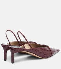 These pumps from Tom Ford deserve a spot in your footwear rotation. Expertly crafted from croc-effect leather, the slingback pair is complete with gold-toned T hardware on the uppers and 55mm kitten heels. Product Details - Upper: leather - Lining: leather - Sole: leather insole and sole - Color: burgundy - Toe shape: pointed toe - Made in Italy - Includes: dust bag, shoe box - Designer color name: Ruby Red - Hardware color: gold - Item number: P01136011 Size & Fit - Fits slightly large to size - we recommend trying a half size smaller - European sizes - 5,5cm-2" heel
