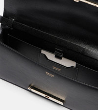 The designs of Tom Ford are fueled by unabashed sensuality. Made in Italy from black leather, this shoulder bag is adorned by the brand's Double T logo. Product Details - Material: goat leather - Lining: goat leather - Made in Italy - Designer color name: Black - Item color: black - Hardware color: silver - Detachable, adjustable shoulder strap - Internal details: internal slot pockets, hand-held mirror, single compartment - Closure: push-lock fastening - Includes: dust bag - Item number: P01084403 Size & Fit - Height 13.5cm-5.5" - Width 30cm-12" - Depth 4.5cm-2" - Adjustable shoulder strap - Min. length shoulder strap 80cm-31.5" - Max. length shoulder strap 110cm-43.5"