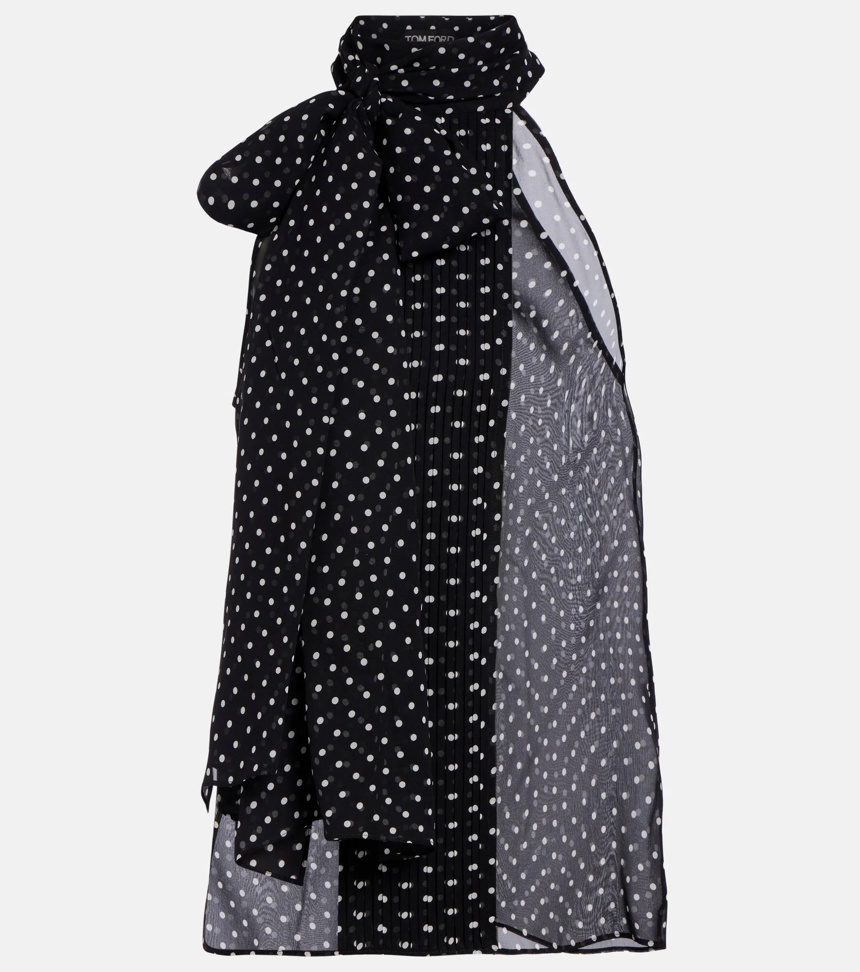 Tom Ford’s designs showcase meticulous attention to detail with a dose of high-octane glamour. This semi-sheer, sleeveless blouse is crafted from pure silk with a draped self-tie collar and a charming all-over polka-dot print. Product Details - Material: 100% silk - Care instructions: dry clean - Made in Italy - Color: black - Designer color name: Black+Off White - Self-tie collar - Item number: P01126967 Size & Fit - True to size - Sheer - Straight fit - Non-stretchy fabric - Falls to the hip - The model seen in the picture is 178cm-5'10" and wearing a size IT 40