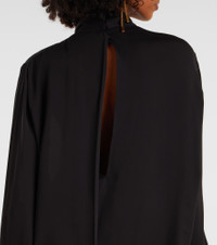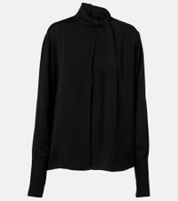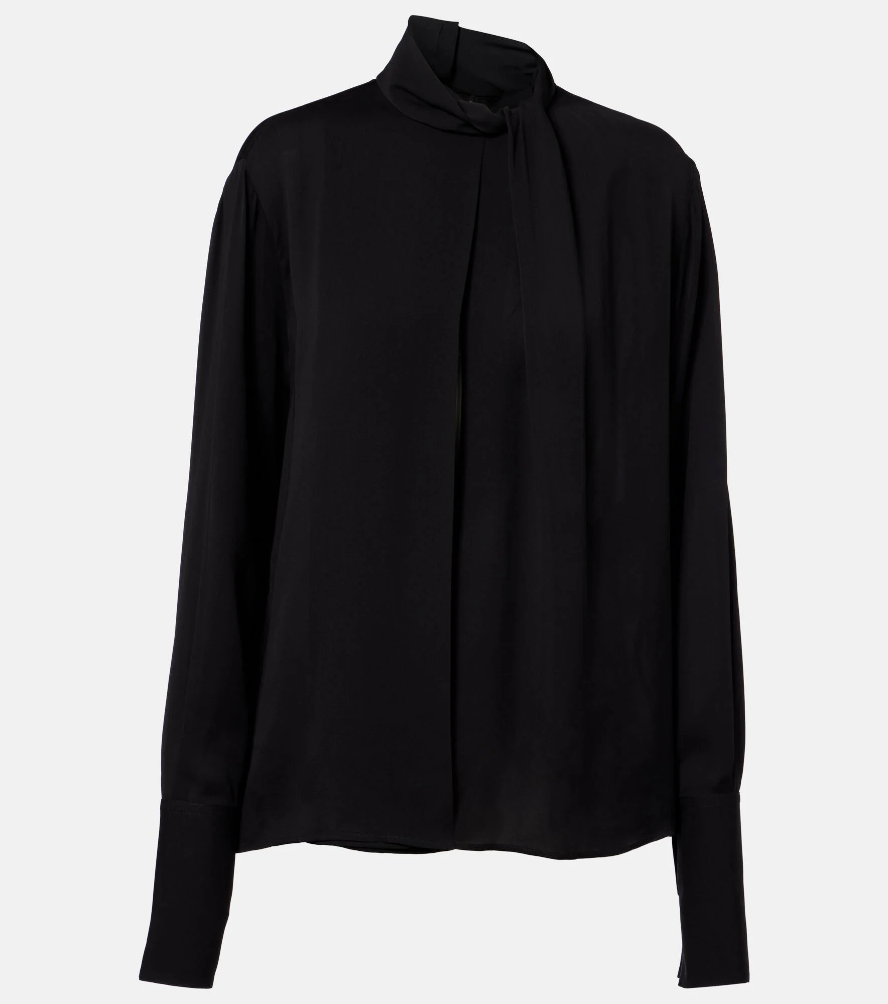 Tom Ford’s designs showcase meticulous attention to detail with a dose of high-octane glamour. This signature flair defines the construction of this blouse, which is cut from lustrous silk satin and elevated by extended long sleeves and a draped neckline. Product Details - Material: 100% silk - Care instructions: dry clean - Made in Italy - Designer color name: Black - Item color: black - Collar: band - Cuff: one button - Item number: P01077433 Size & Fit - True to size - Low back - Designed for a loose fit - Non-stretchy fabric - Falls to the hip - The model seen in the picture is 178cm-5'10" and wearing a size IT 38