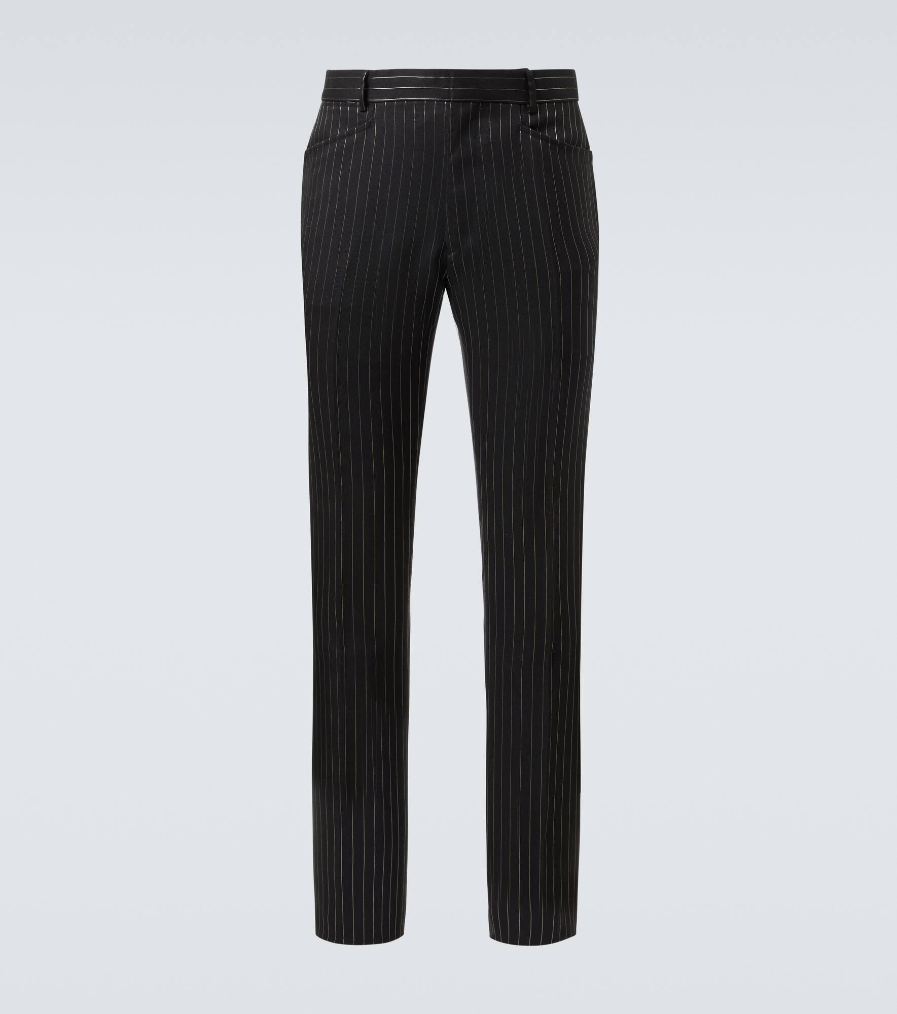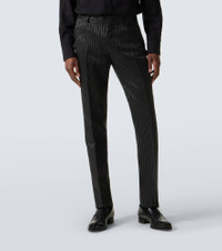 Tom Ford’s tailoring showcases meticulous attention to detail with a dose of high-octane glamour. Made from wool and silk organza and adorned with stripes, the Dylan suit pants are unhemmed for tailoring. Product Details - Material: 74% wool, 24% silk, 1% viscose, 1% metallic fibres - Care instructions: dry clean - Made in Italy - Designer color name: Black & Silver - Item color: black - Lining: 100% cupro - Pocket lining: 70% cotton, 20% viscose, 10% modal - Closure: zipper, hook fastening - Pockets: side slit pockets, back pockets - Belt loops - Item number: P00991939 Size & Fit - True to size - Non-stretchy fabric - Slim-leg - Unhemmed for tailoring - Height of model is 189cm-74.5" and wears a size 50