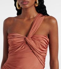 one-shoulder twist-front cocktail dress