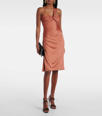 Turn heads in this one-shoulder Tom Ford cocktail dress. Crafted from jersey, it features a striking twist-front detail and a daring side slit, creating an effortlessly glamorous silhouette that’s perfect for unforgettable evenings. Product Details - Material: 97% viscose, 3% elastane - Care instructions: dry clean - Made in Italy - Designer color name: Burnt Terracotta - Item color: brown - Closure: zip and hook fastening - Lining: 81% polyamide, 19% elastane - Item number: P01024493 Size & Fit - True to size - Cinched waist - Stretchy fabric - The model seen in the picture is 178cm-5'10" and wearing a size IT 38