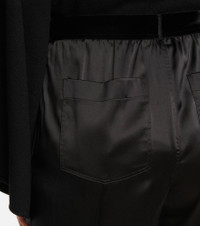 For an elevated casual look, turn to these pants from Tom Ford. Made in Italy from silk-blend satin, this relaxed pajama-style design is anchored with a logo-tipped waistband in luxurious velvet. Product Details - Made in Italy - Material: 93% silk, 7% elastane - Pockets: side slit pockets - Designer color name: Black - Elasticated waistband - Care instructions: dry clean - Material II: 10% elastane, 90% polyamide - Item number: P00638454 Size & Fit - Fits large to size - we recommend trying one size smaller - Elasticated waist - Lightweight material - Straight leg - High-waisted - The model seen in the picture is 178cm-5'10" and wearing a size XXS