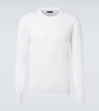 Tom Ford embodies the art of craftsmanship with superior fabrications and timeless silhouettes. Crafted from soft jersey, this T-shirt is cut to a classic silhouette with long sleeves. Product Details - Material: 67% lyocell, 33% cotton - Care instructions: dry clean - Made in Portugal - Color: white - Designer color name: White - Item color: white - Sleeves: long-sleeved - Collar: crewneck - Item number: P01097118 Size & Fit - True to size - Straight fit - Slightly stretchy fabric - Falls to the hip - Height of model is 189cm-74.5" and wears a size 50