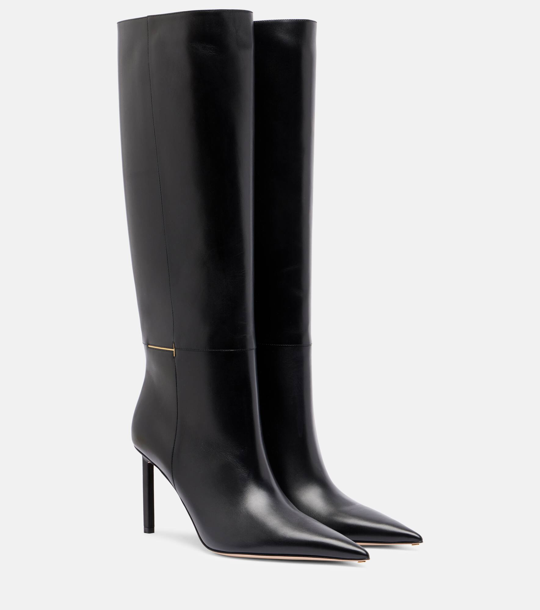 Meticulously crafted from smooth leather, the Julianne knee-high boots from Tom Ford deserve a spot in your timeless collection. This refined pair is complete with sharp, pointed toes, 85mm stiletto heels, and subtle gold-toned logo detailing. Product Details - Upper: calf leather - Lining: calf leather - Sole: leather insole and sole - Toe shape: pointed toe - Made in Italy - Includes: shoe box - Designer color name: Black - Item color: black - Item number: P01083409 Size & Fit - True to size - European sizes - 8,5cm-3.5" heel (size EU 38) - 38cm-15" shaft height (size EU 38) - 36cm-14" shaft width (size EU 38) - shaft width measured on largest part of boot