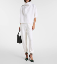 Tom Ford offers a high-fashion take on the T-shirt with a structured funnel neckline. The piece is knit from a cozy cashmere-blended yarn and showcases exquisite drape. Product Details - Material: 56% cashmere, 26% polypropylene, 17% viscose, 1% polyamide - Care instructions: dry clean - Made in Italy - Designer color name: Off White - Item color: white - Collar: mockneck - Item number: P01077419 Size & Fit - True to size - For a closer fit, we recommend taking one size down - Designed for a loose fit - Slightly stretchy fabric - Falls to the hip - The model seen in the picture is 178cm-5'10" and wearing a size XS