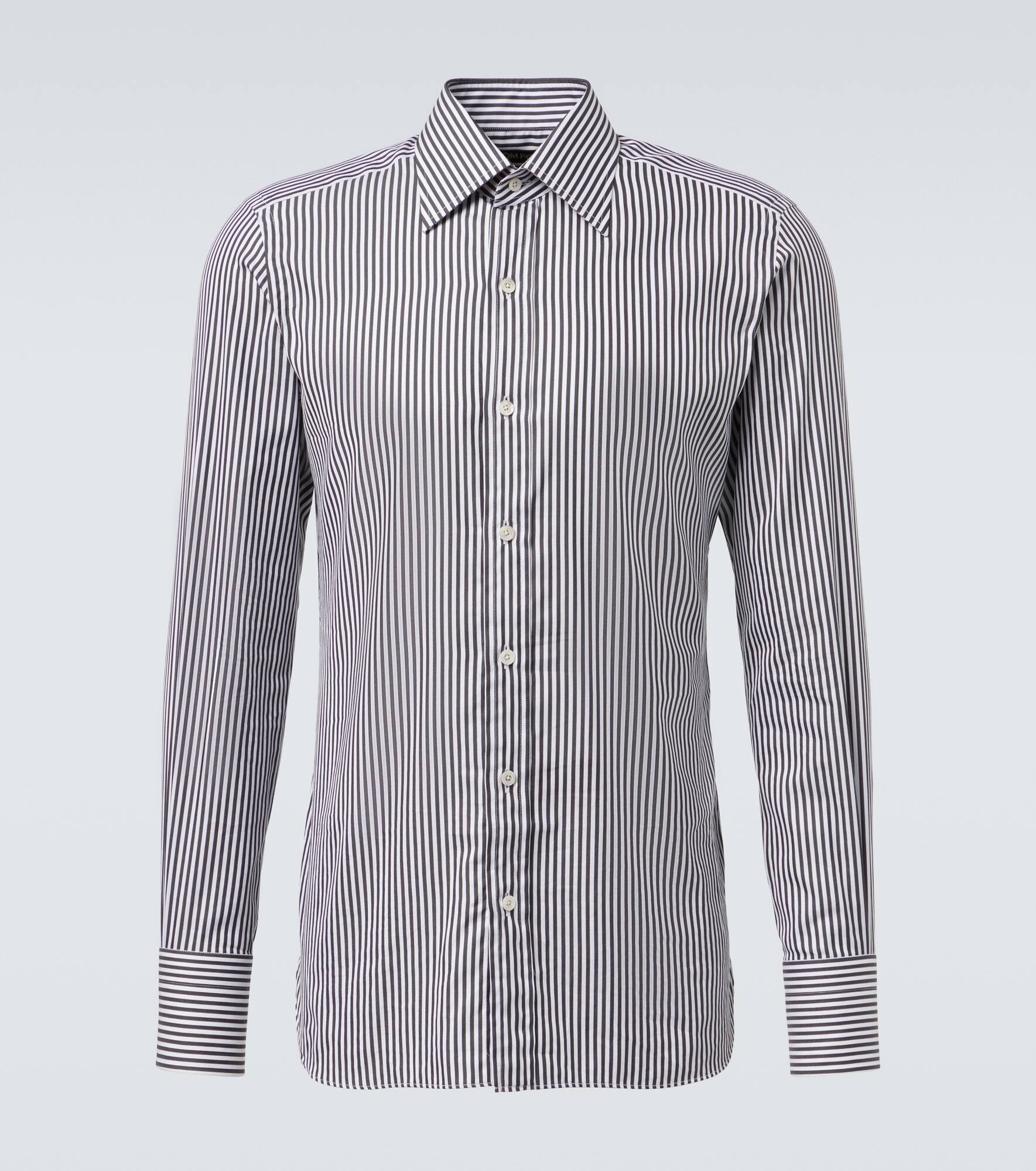 Center your refined looks around pieces like the Ladder shirt from Tom Ford. Made from breathable cotton, this style is complete with a classic stripe pattern and comes in a fitted silhouette. Product Details - Material: 100% cotton - Care instructions: do not wash - Made in Italy - Designer color name: White & Black - Item color: multicolor - Material II: 100% mother-of-pearl - Item number: P01042771 Size & Fit - True to size - Without pleats in the back - Slim fit - Non-stretchy fabric - Falls below the hip - The model in the picture is 185cm-6'1" and wearing a size EU 41