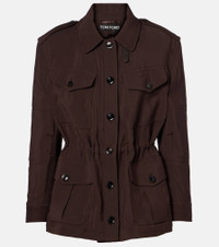 Perfect for your transitional wardrobe, this versatile field jacket from Tom Ford is crafted from sturdy twill and features capacious pockets and a cinched waistline. Product Details - Material: 76% viscose, 24% wool - Care instructions: dry clean - Made in Italy - Designer color name: Dark Chocolate - Item color: brown - Details: 100% leather - Contains non-textile parts of animal origin - Collar: spread - Epaulettes - Closure: buttoned front, buckle fastening - Drawstring waist - Pockets: patch pockets - Cuff: buttoned - Unlined - Item number: P01053660 Size & Fit - True to size - Loose fit, drawstring waist - Non-stretchy fabric - Falls below the hip - The model seen in the picture is 178cm-5'10" and wearing a size IT 38