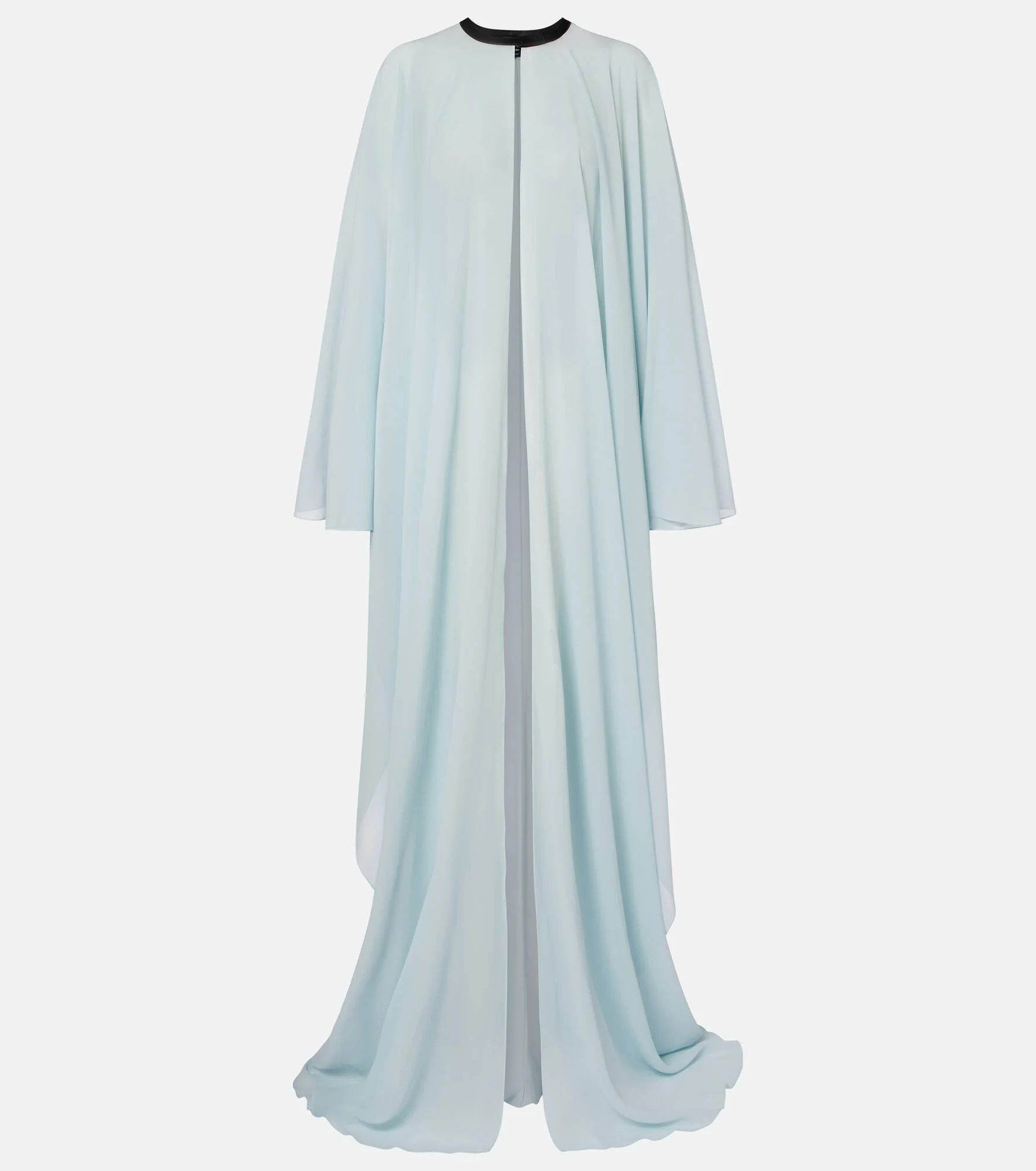 SILK GEORGETTE CREWNECK KAFTAN WITH LEATHER DETAIL