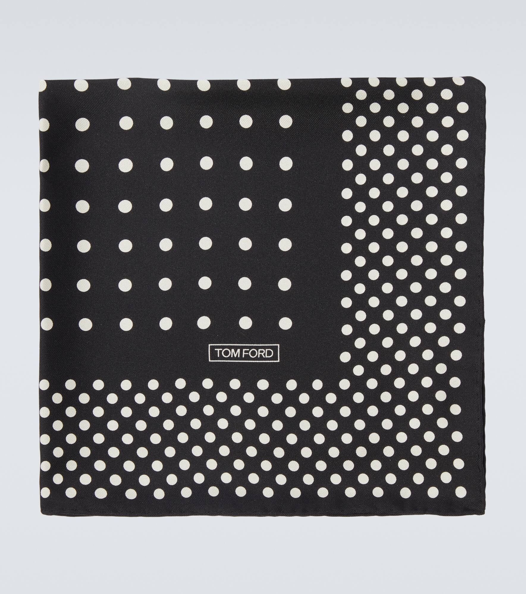 Crafted from silk, this pocket square from Tom Ford elevates any sophisticated silhouette with its charming polka-dot print. The design is complete with the brand's logo for a signature touch. Product Details - Material: 100% silk - Care instructions: dry clean - Made in Italy - Designer color name: Black - Item color: black - Item number: P01042757 Size & Fit - Length 40cm-15.5" - Width 40cm-15.5"