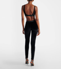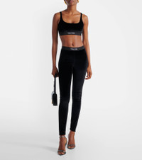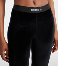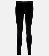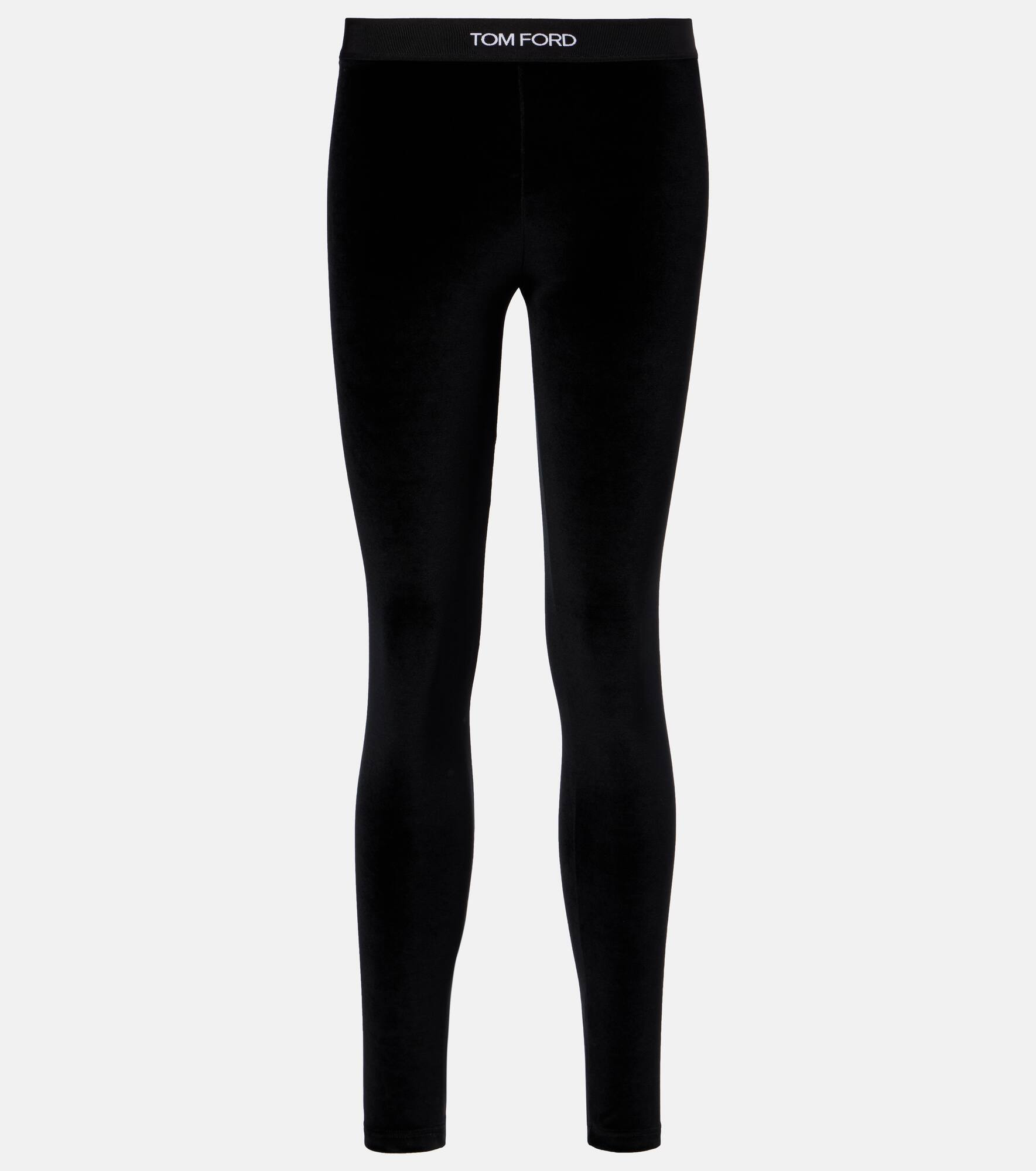 These leggings from Tom Ford are made from velour fabric that's smooth and stretchy. They feature an elasticated waistband accented with jacquard logo lettering. Product Details - Material: 72% triacetate, 28% polyester - Care instructions: dry clean - Made in Bosnia and Herzegovina - Designer color name: Black - Item color: black - Insert: 82% polyester, 9% elastane, 9% polyamide - Elasticated waistband - Item number: P01053628 Size & Fit - True to size - Elasticated waist - Stretchy fabric - Skinny leg - The model seen in the picture is 178cm-5'10" and wearing a size XS