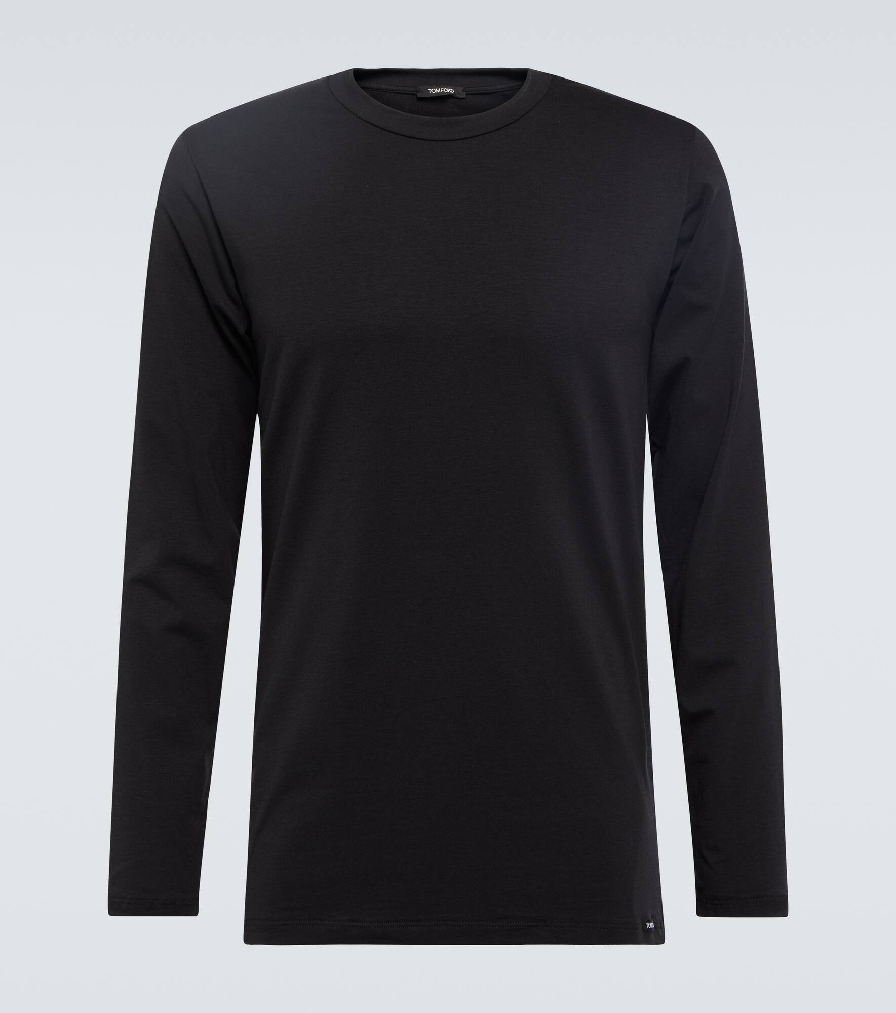 For your collection of essentials, this T-shirt from Tom Ford is a long-sleeve style made from stretchy cotton-blend material. Product Details - Material: 47% cotton, 47% modal, 6% elastane - Made in Bosnia and Herzegovina - Care instructions: machine wash at 30 degrees - Designer color name: Black - Item number: P00788909 Size & Fit - True to size - Slim fit - Stretchy fabric - Falls to the hip - The model in the picture is 185cm-6'1" and wearing a size M