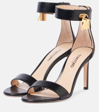Soar with confidence in these sandals from Tom Ford. Set atop slender 85mm heels, they're made from supple leather with Padlock hardware and zipped detailing at the back. Product Details - Upper: leather - Lining: leather - Sole: leather insole and sole - Toe shape: round open toe - Made in Italy - Includes: shoe box, dust bags - Designer color name: Black - Item color: black, beige - Closure: zipped back - Hardware color: gold - Item number: P01023850 Size & Fit - True to size - European sizes - 8,5cm-3.5" heel (size EU 38)