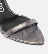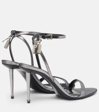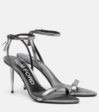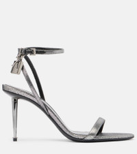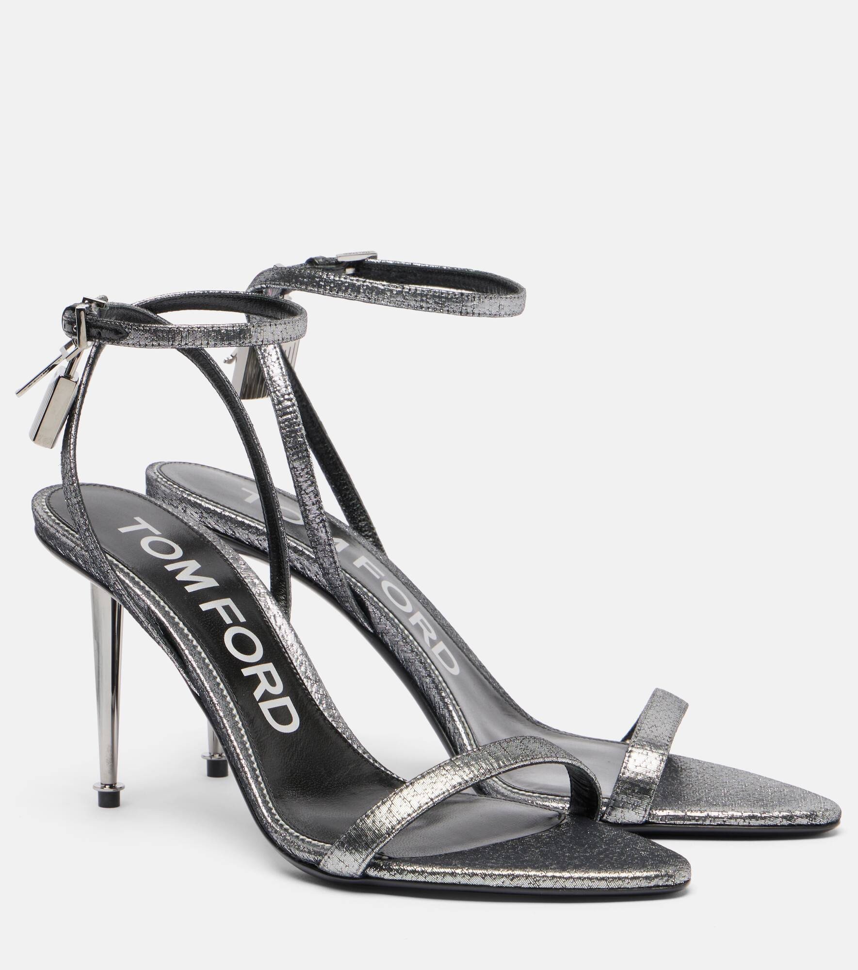 The aptly named Padlock sandals from Tom Ford are embellished with lock charms at the ankle fastenings that instantly catch the eye. This pair is shaped with 85mm stiletto heels and pointed toes. Product Details - Upper: fabric - Lining: fabric, leather - Sole: leather insole and sole - Toe shape: pointed open toe - Made in Italy - Includes: shoe box - Designer color name: Dark Silver - Item color: gray - Item number: P01083405 Size & Fit - True to size - Slightly narrow at the toe - Best fit for narrow feet - European sizes - 8,5cm-3.5" heel (size EU 38)