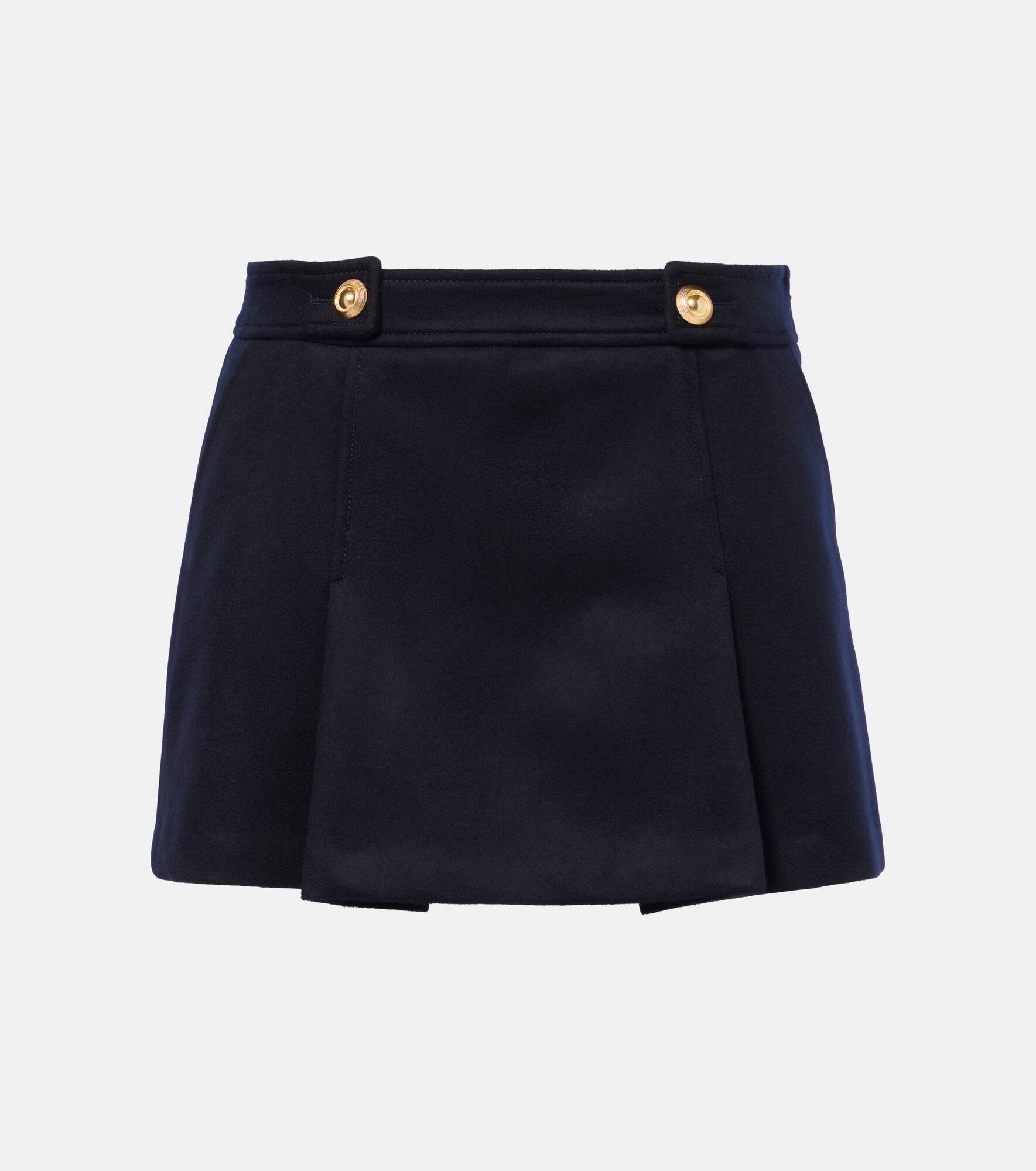 Pleated wool and cashmere miniskirt