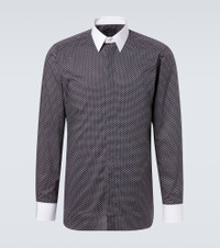 Tom Ford’s tailoring showcases meticulous attention to detail with a dose of high-octane glamour. Made from crisp cotton poplin, this shirt is characterized by its polka-dot print and contrasting collar and cuffs. Product Details - Material: 100% cotton - Care instructions: hand wash - Made in Switzerland - Designer color name: Black&White - Item color: black, white - Contains non-textile parts of animal origin - Closure: buttoned placket - Collar: classic (Straight point) - Cuff: buttoned - Item number: P01060263 Size & Fit - True to size - Without pleats in the back - Slim fit - Non-stretchy fabric - Falls below the hip - Height of model is 189cm-74.5" and wears a size EU 41