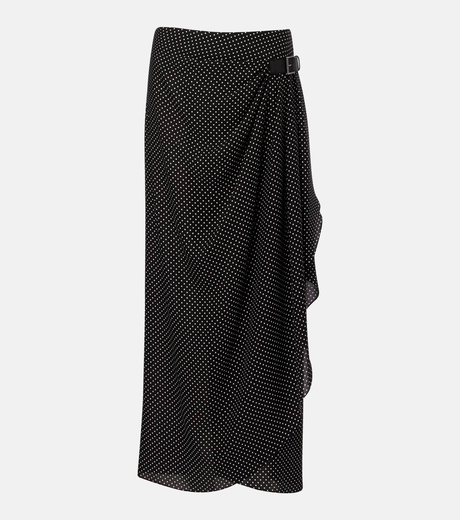 POLKA DOT SILK SABLE WRAP SKIRT WITH LEATHER DETAIL