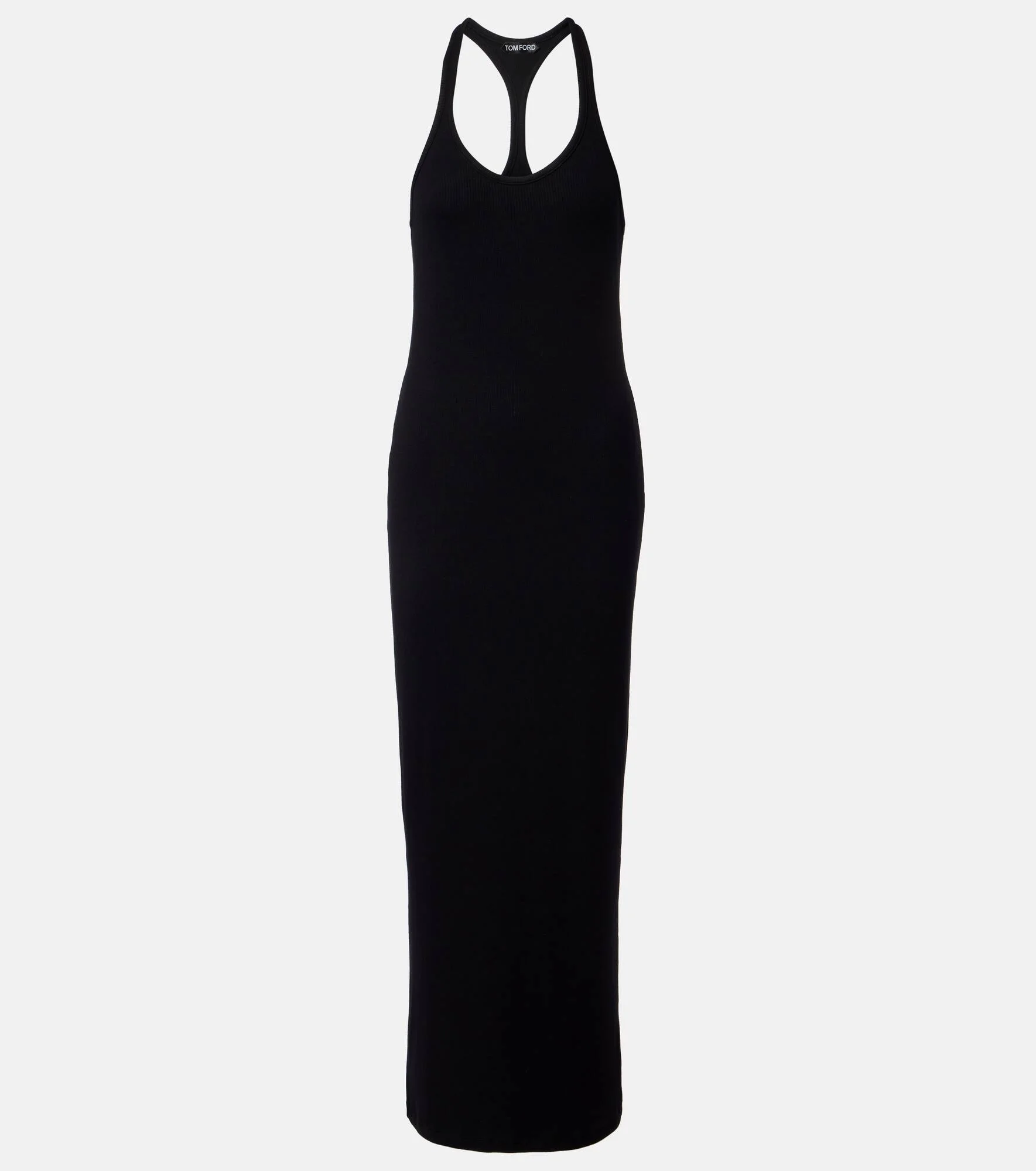 Tom Ford’s designs showcase meticulous attention to detail with a dose of high-octane glamour. This maxi dress is ribbed-knitted from jersey and features a sheath silhouette with a halterneck. Product Details - Material: 94% viscose, 6% elastane - Care instructions: hand wash - Made in Italy - Color: black - Designer color name: Black - Item number: P01126982 Size & Fit - Fits large to size - we recommend trying one size smaller - Cinched waist - Stretchy fabric - The model seen in the picture is 178cm-5'10" and wearing a size IT 36