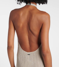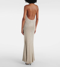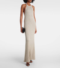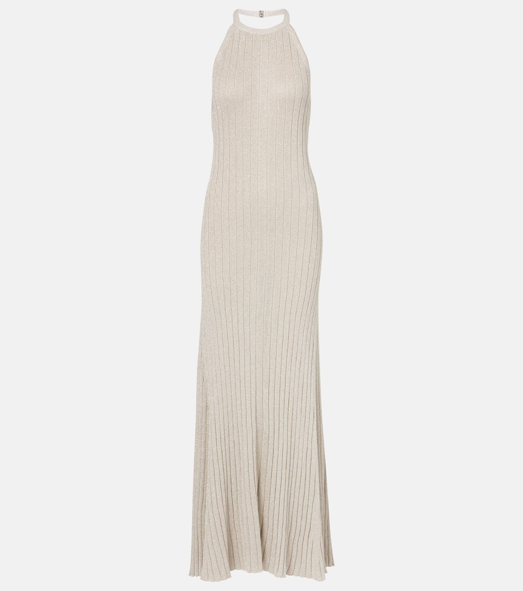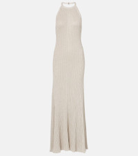 Ribbed-knit halterneck lamé maxi dress