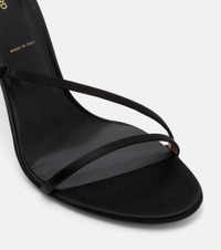 Step into style with these sandals from Tom Ford. Crafted in Italy with satin uppers, the pair features a gold-tone T at the heel, dainty straps, and buckle closures at the ankles. Product Details - Upper: fabric - Lining: leather - Sole: leather insole and sole - Color: black - Toe shape: round open toe - Made in Italy - Includes: shoe box, dust bag - Designer color name: Black - Item color: black - Closure: buckle-fastening ankle strap - Item number: P01136021 Size & Fit - True to size - European sizes - 10,5cm-4" heel