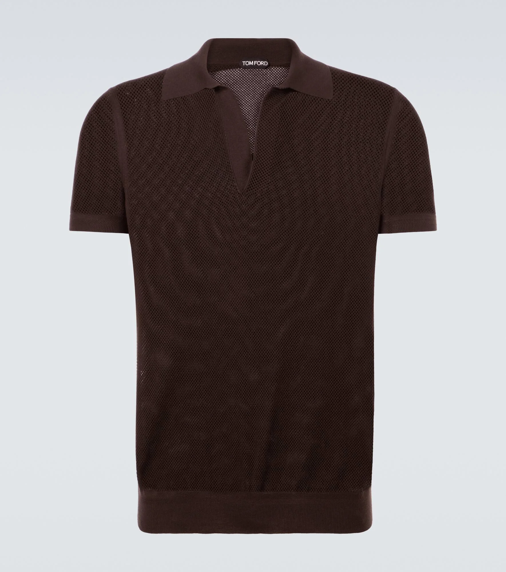 Tom Ford delivers bold sophistication through luxe materials and an unmistakably modern edge. This brown-hued polo shirt is knitted from cotton and silk with a semi-sheer construction and relaxed fit. Product Details - Material: 50% cotton, 50% silk - Care instructions: dry clean - Made in Italy - Color: brown - Designer color name: Chocolate - Collar: polo collar - Hem: ribbed - Cuff: ribbed - Item number: P01105281 Size & Fit - True to size - Slim fit - Stretchy fabric - Falls to the hip - The model in the picture is 185cm-6'1" and wearing a size IT 50