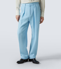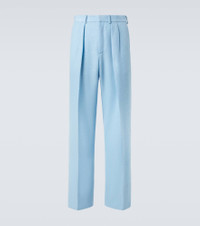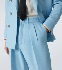 Straight-Leg Pleated Sequin-Embellished Wool-Blend Suit Trousers Light blue