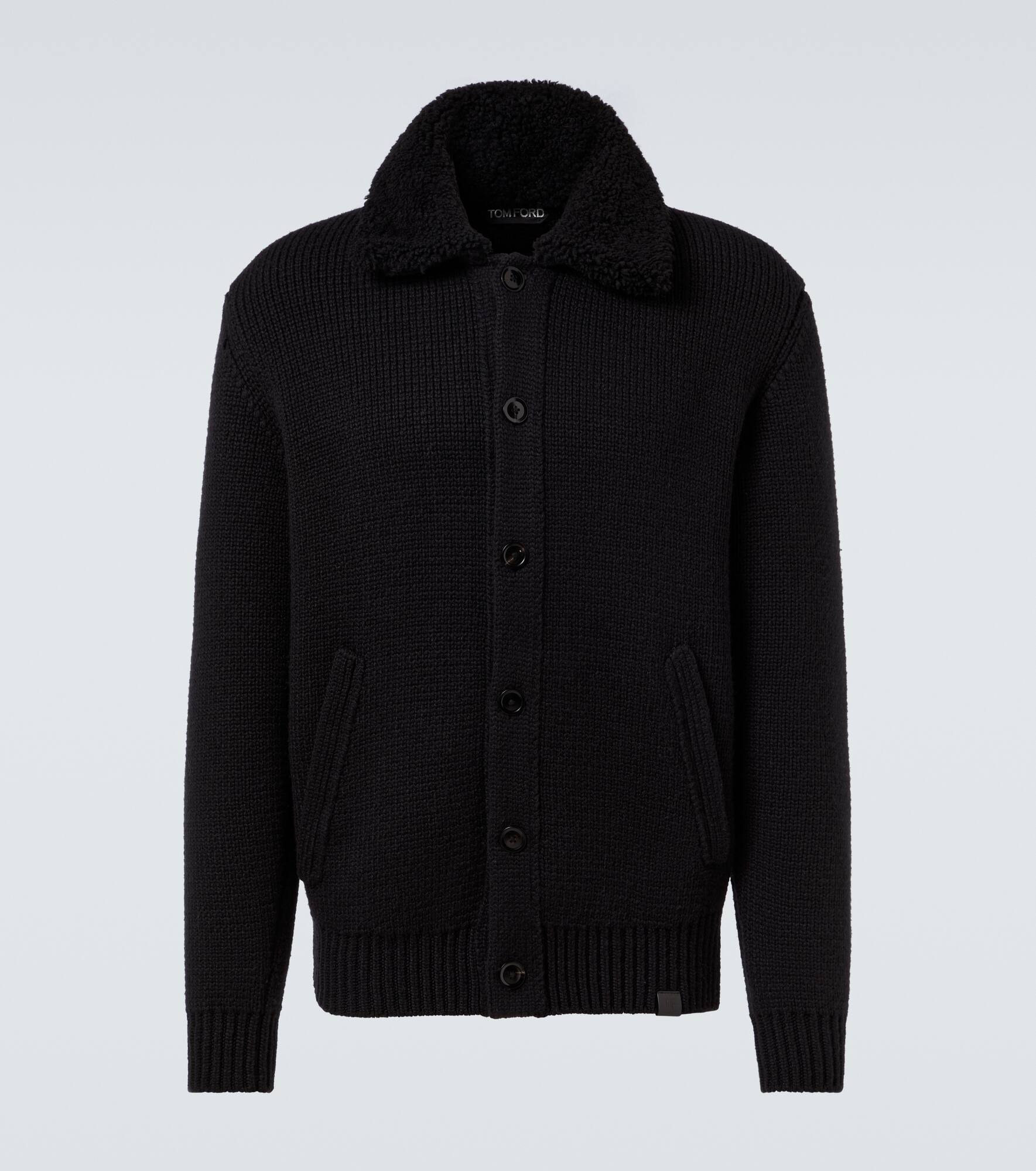 SHEARLING COLLAR CASHMERE CARDIGAN