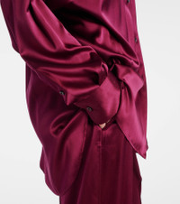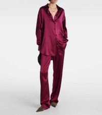This Tom Ford shirt is a go-to for formal occasions if you want quality and sophistication. Crafted in Italy from silk-blend satin, this piece features a buttoned front and a loose silhouette for ultimate comfort. Product Details - Material: 94% silk, 6% elastane - Care instructions: dry clean - Made in Italy - Designer color name: Deep Plum - Item color: purple - Contains non-textile parts of animal origin - Collar: classic (Straight point) - Closure: buttoned front - Cuff: one button - Item number: P01053653 Size & Fit - True to size - Dropped shoulders - Designed for a loose fit - Non-stretchy fabric - Falls below the hip - The model seen in the picture is 178cm-5'10" and wearing a size IT 38