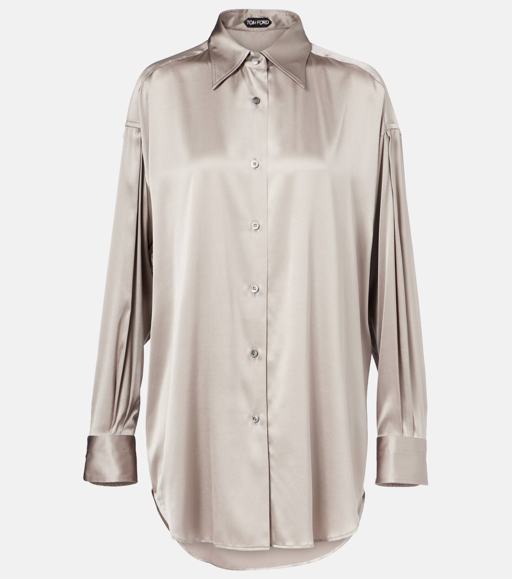 This Tom Ford shirt is a go-to for formal occasions if you want quality and sophistication. Crafted in Italy from silk-blend satin, this piece features a buttoned front and a loose silhouette for ultimate comfort. Product Details - Material: 94% silk, 6% elastane - Care instructions: dry clean - Made in Italy - Designer color name: Dark Silver - Item color: silver - Contains non-textile parts of animal origin - Closure: buttoned front - Collar: classic (Straight point) - Cuff: one button - Item number: P01053654 Size & Fit - True to size - Dropped shoulders - Designed for a loose fit - Non-stretchy fabric - Falls below the hip - The model seen in the picture is 178cm-5'10" and wearing a size IT 38