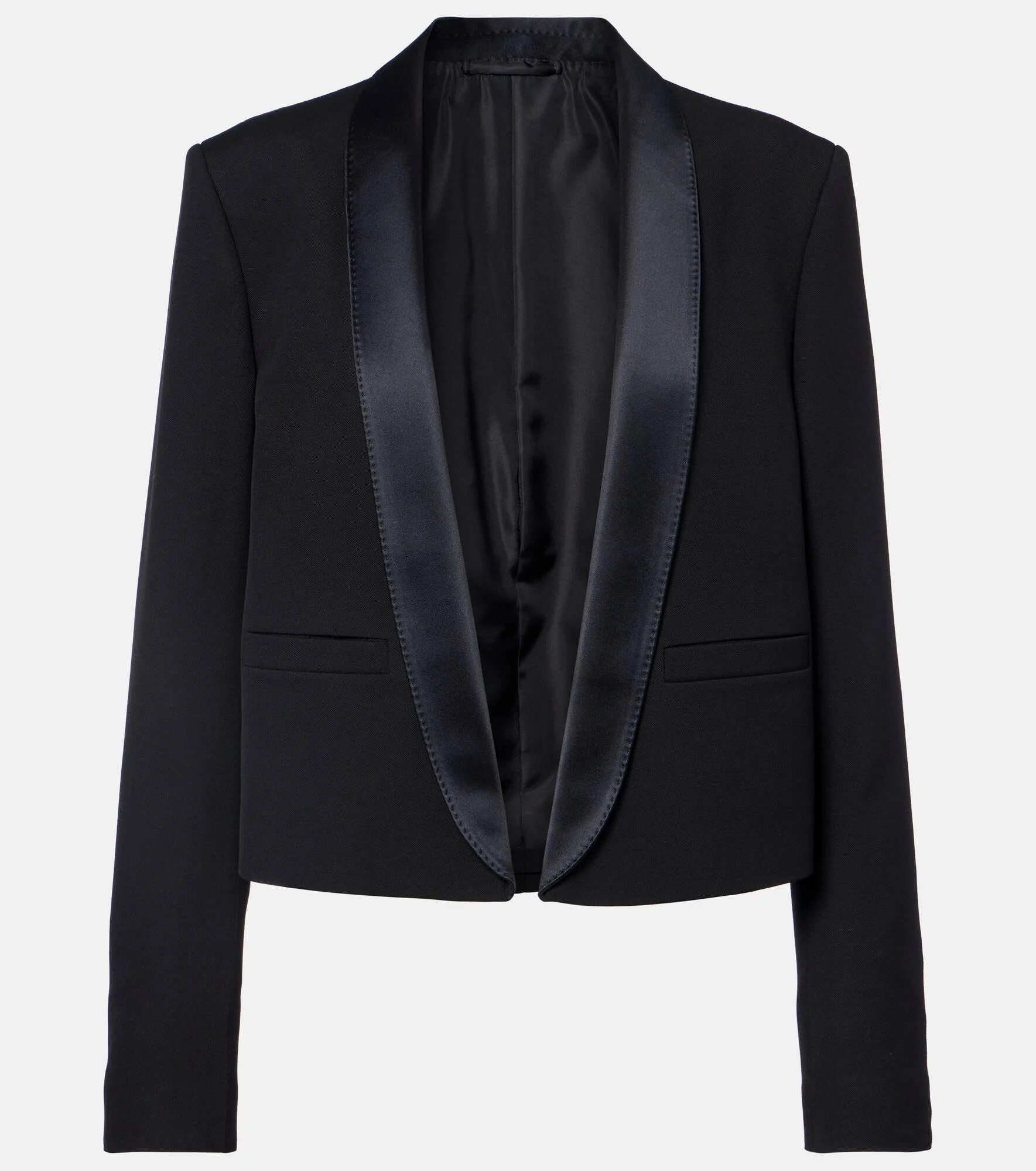 BI-COLOR SINGLE BREASTED SHAWL LAPEL CROPPED TUXEDO JACKET