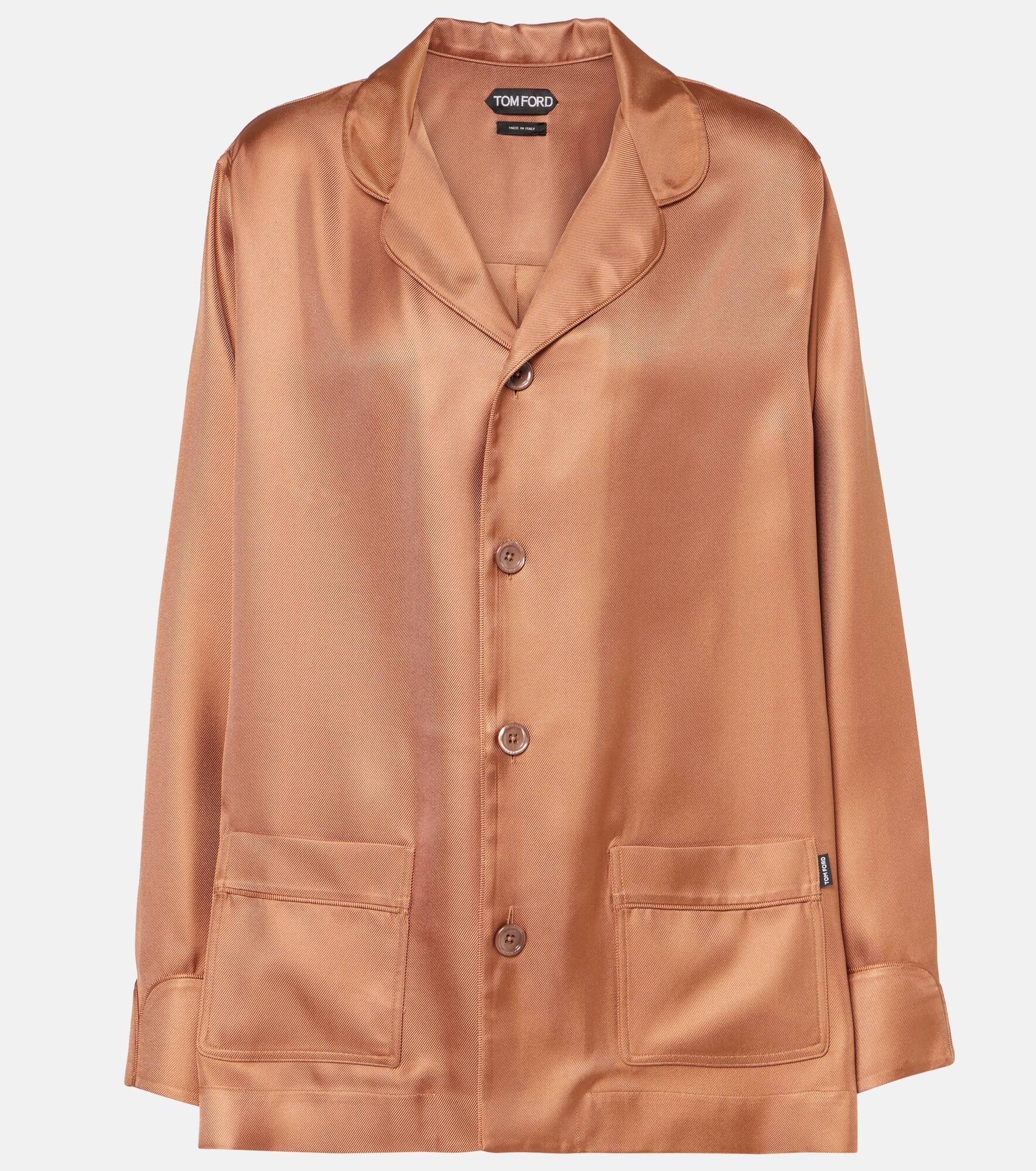 Product Details - Material: 100% silk - Care instructions: dry clean - Made in Italy - Designer color name: Caramel - Closure: buttoned front - Pockets: patch pockets - Contains non-textile parts of animal origin - Item number: P01012796 Size & Fit - True to size - Dropped shoulders - Designed for a loose fit - Non-stretchy fabric - Falls below the hip - The model seen in the picture is 178cm-5'10" and wearing a size IT 40