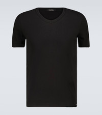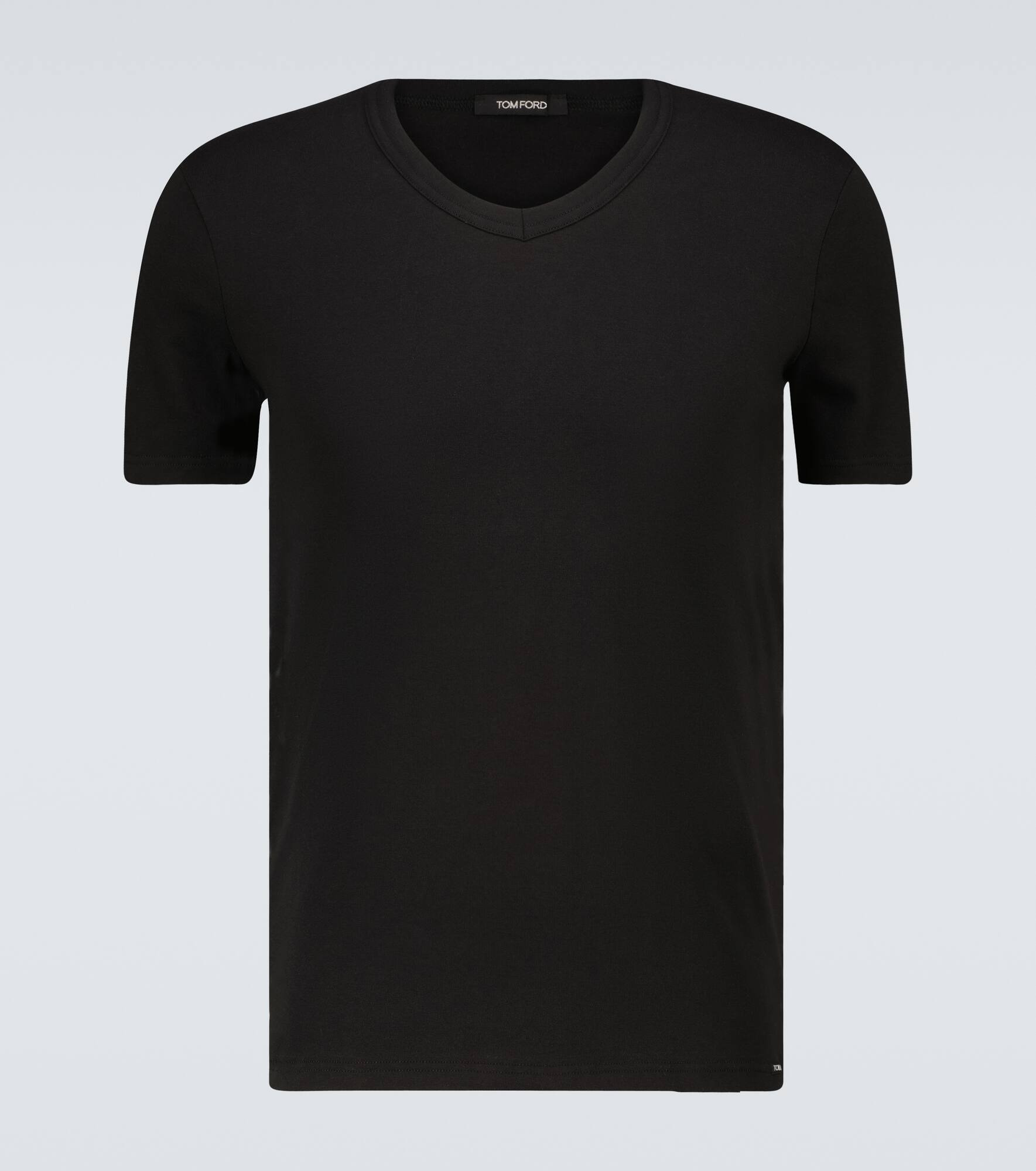 Ideal as a loungewear layer, this black T-shirt from Tom Ford is crafted from a soft cotton jersey with a slight stretch, and has a V-neck design and short sleeves. Product Details - Care instructions: machine wash at 30 degrees - Material: 95% cotton, 5% elastane - Designer color name: Black - Item number: P00511589 Size & Fit - True to size - Slim fit - Mid-weight material - Falls to the hip - The model in the picture is 185cm-6'1" and wearing a size M