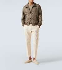 One of the most celebrated designers of all time, Tom Ford is a master at balancing high-octane glamour with modern masculinity. Made in Italy from technical material, this jacket is a classic blouson style with ribbed-knit trims and zipper-fastened pockets. Product Details - Material: 84% polyester, 16% polyamide - Care instructions: specialist clean - Made in Italy - Color: green - Designer color name: Olive Green - Lining: 70% wool, 30% cashmere - Lining II: 100% cotton - Trim: 92% wool, 7% polyamide, 1% elastane - Details: 100% calf leather - Contains non-textile parts of animal origin - Closure: two-way zipped front - Pockets: zipped pockets - Item number: P01097199 Size & Fit - True to size - For a looser fit, we recommend taking one size up - Slim fit - Elasticated hem - Non-stretchy fabric - Falls to the hip - The model in the picture is 185cm-6'1" and wearing a size IT 50