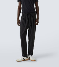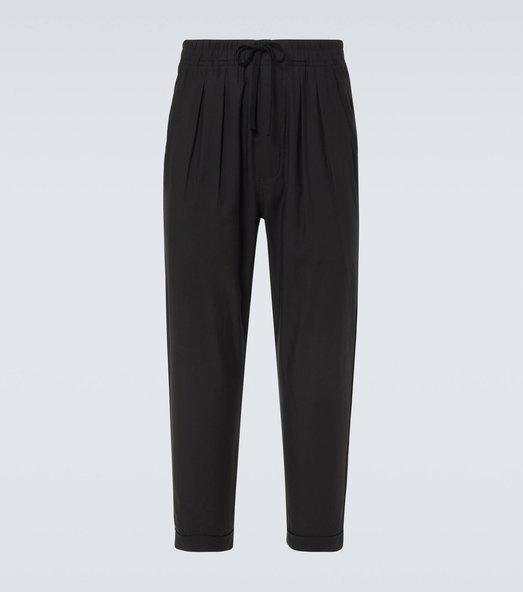 Product Details - Material: 65% lyocell, 21% silk, 14% cotton - Care instructions: dry clean - Made in Italy - Designer color name: Black - Item color: black - Material II: 100% calf leather - Details: 100% water-buffalo horn - Drawstring waist - Pockets: side slit pockets, back pockets - Item number: P01042754 Size & Fit - True to size - Elasticated waist - Adjustable at the waist - Non-stretchy fabric - Tapered leg - The model in the picture is 185cm-6'1" and wearing a size 32