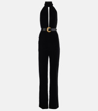 STRETCH VELVET BELTED JUMPSUIT