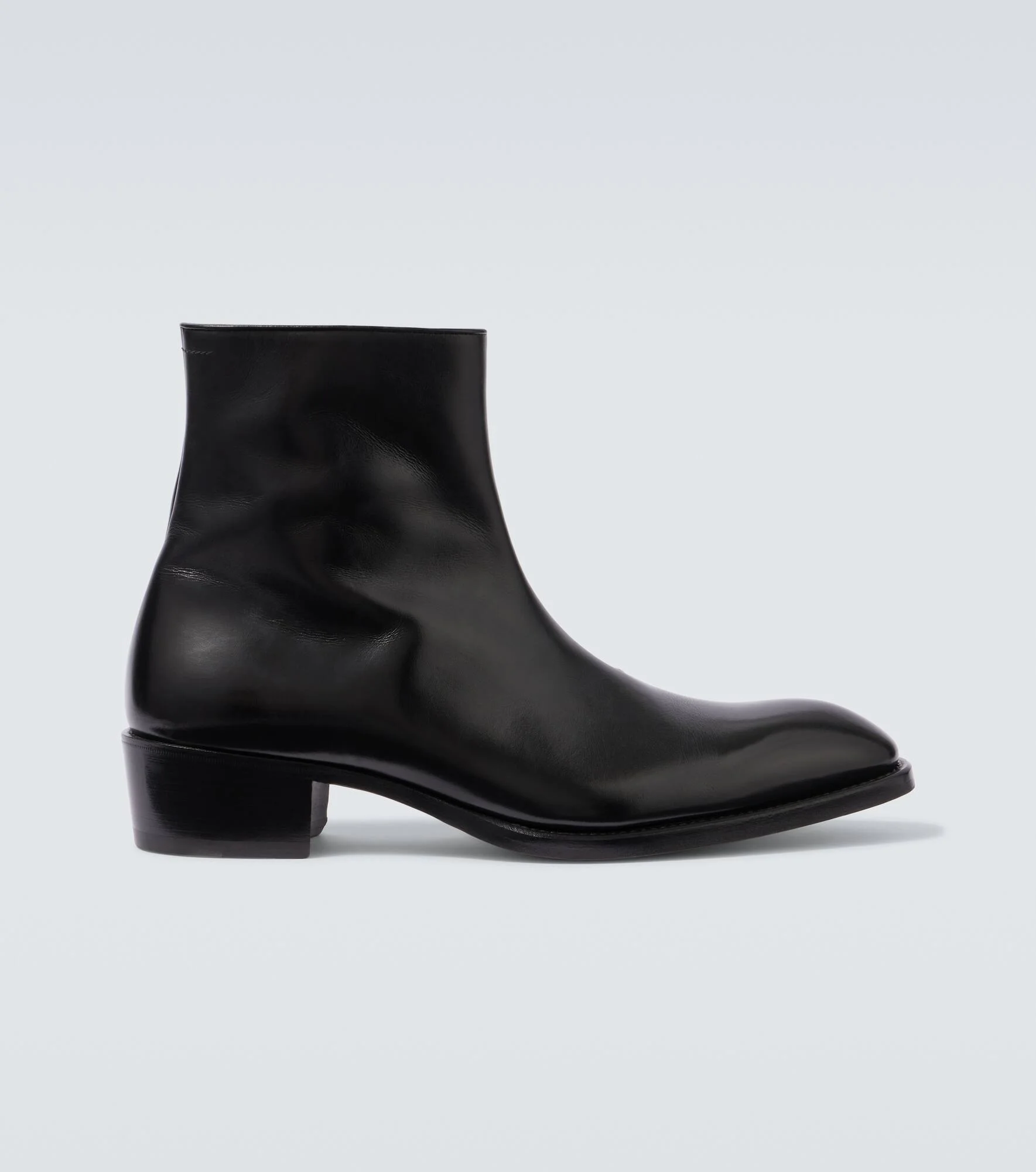 Every step is confident in the Vincent ankle boots from Tom Ford. The pair is crafted from polished leather, has pointed toes, and zips along the insides for easy on-and-off. Product Details - Upper: calf leather - Lining: leather - Sole: leather insole and sole - Color: black - Toe shape: almond toe - Made in Italy - Includes: shoe box - Designer color name: Black - Item color: black - Closure: zipped side - Item number: P01097150 Size & Fit - True to size - Half sizes please take the next size up - European sizes
