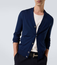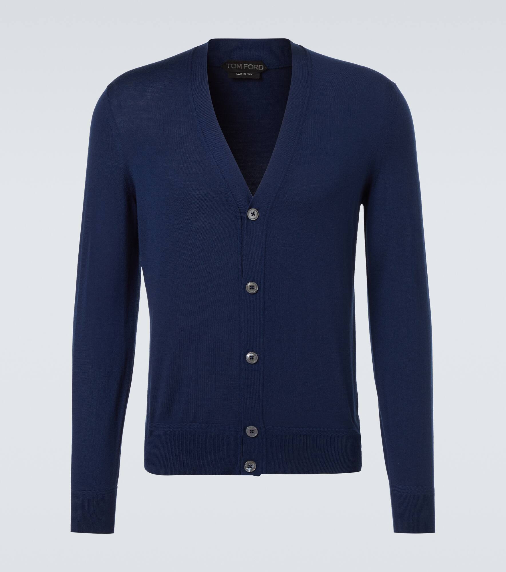 Tom Ford’s tailoring showcases meticulous attention to detail with a dose of high-octane glamour. This timeless cardigan is crafted from warm wool, featuring a buttoned-up front, a V-neckline, and ribbed details. Product Details - Material: 100% wool - Care instructions: hand wash - Made in Italy - Designer color name: Midnight Blue - Item color: blue - Contains non-textile parts of animal origin - Closure: buttoned front - Hem: ribbed - Item number: P01042708 Size & Fit - True to size - For a looser fit, we recommend taking one size up - Slim fit - Stretchy fabric - Slightly cropped - Height of model is 189cm-74.5" and wears a size IT 50