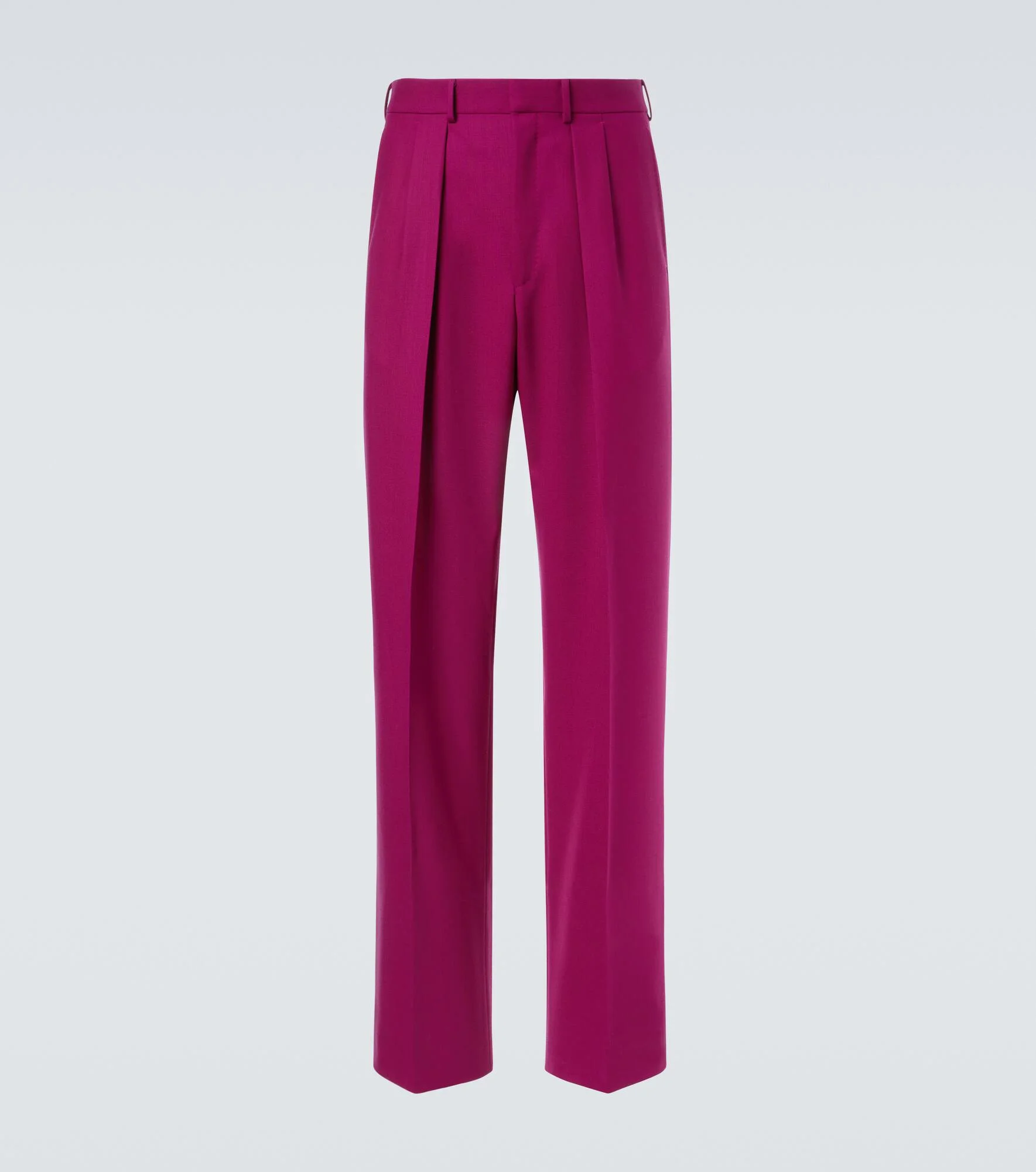 Tom Ford’s tailoring showcases meticulous attention to detail with a dose of high-octane glamour. Italian-made from wool twill, these suit pants exude polished elegance with their pleated finish and fluid straight-leg silhouette. Product Details - Material: 100% wool - Care instructions: dry clean - Made in Switzerland - Color: pink - Designer color name: Bright Orchid - Lining: 100% cupro - Pocket lining: 70% cotton, 30% viscose - Contains non-textile parts of animal origin - Closure: zipper fly, button and hook fastenings - Pockets: side slit pockets, back pockets - Belt loops - Item number: P01105296 Size & Fit - True to size - Non-stretchy fabric - Straight leg - Unhemmed for tailoring - The model in the picture is 185cm-6'1" and wearing a size 50