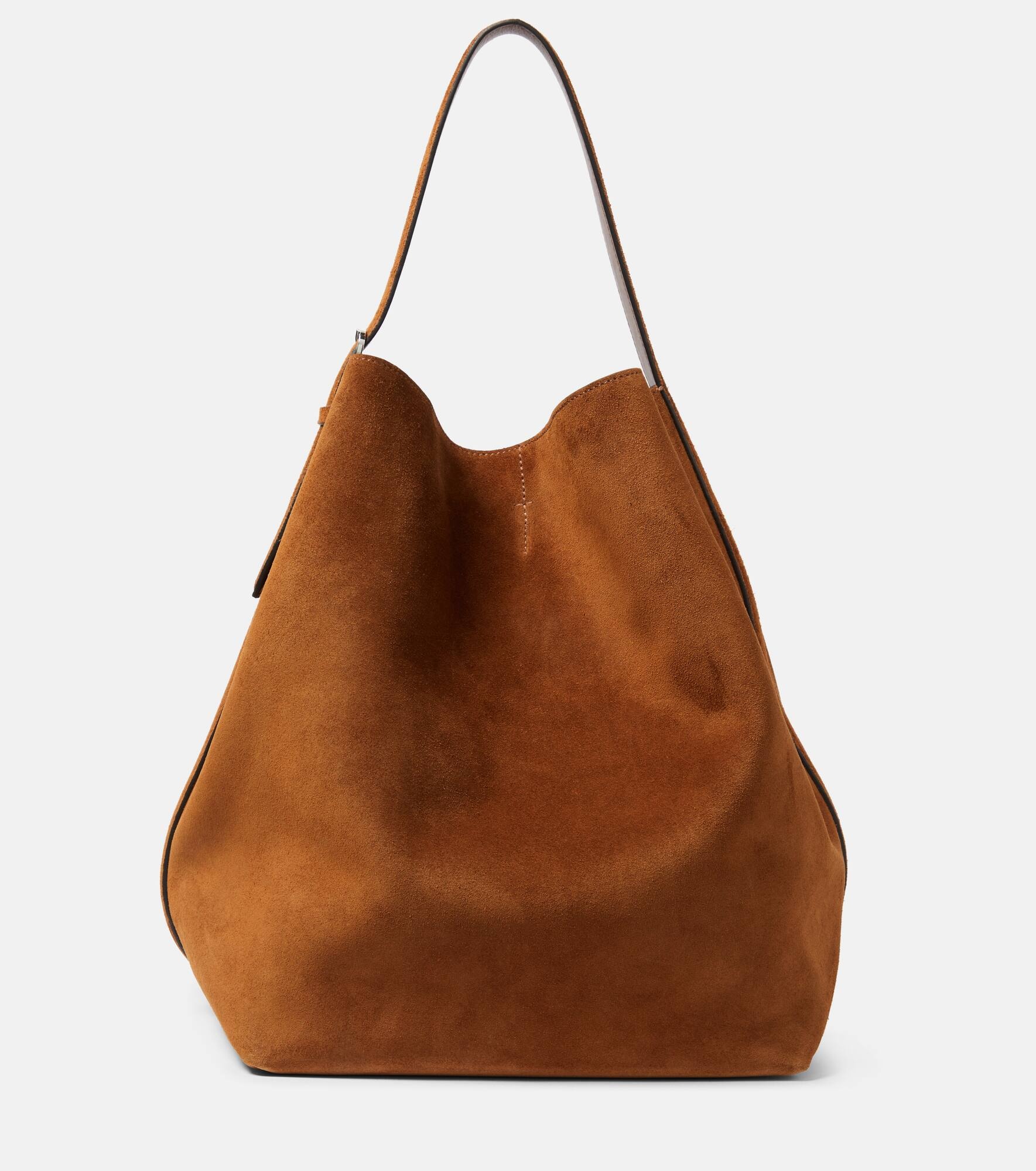 Belted suede tote tan