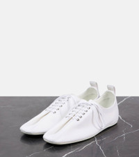 Define your dress code with styles from Toteme, a Stockholm-based brand dedicated to creating a modern uniform. Crafted from canvas, these flats showcase streamlined square toes and secure lace-up fastening. Product Details - Upper: fabric - Lining: fabric - Sole: leather insole, rubber sole - Toe shape: square toe - Made in Italy - Includes: shoe box, dust bag - Designer color name: White - Closure: lace-up - Hardware color: silver - Item number: P00990179 Size & Fit - True to size - Narrow - Best fit for narrow feet - Half sizes please take the next size down - European sizes