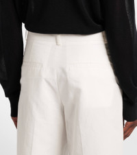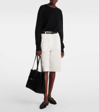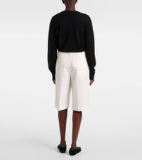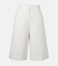 Define your dress code with styles from Toteme, a Stockholm-based brand dedicated to creating a modern uniform. Made from cotton and linen, these Bermuda shorts are cut to a wide, knee-length silhouette. Product Details - Material: 74% cotton, 26% linen - Care instructions: dry clean - Made in Portugal - Designer color name: Off-White - Item color: white - Closure: zip, hook, and button fastening - Pockets: side slit pockets, back pockets - Belt loops - Item number: P01075245 Size & Fit - True to size - Non-stretchy fabric - Wide-leg - The model seen in the picture is 178cm-5'10" and wearing a size DE 34