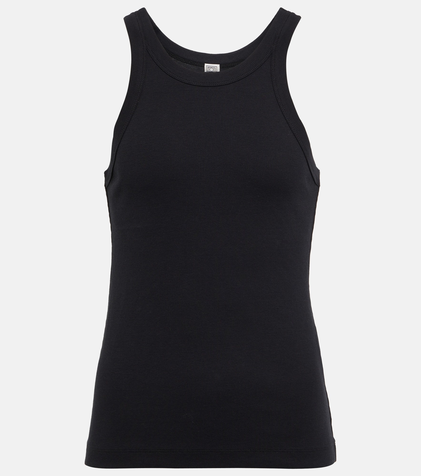 This tank top from Totême is made from cotton-blend jersey in a ribbed-knit. The slim fitting style has a round neckline and wide shoulder straps. Product Details - Care instructions: machine wash at 30 degrees - Material: 95% cotton, 5% elastane - Made in Portugal - Designer color name: Black - Item number: P00777163 Size & Fit - True to size - Straight fit - Mid-weight material - Falls to the hip - The model seen in the picture is 178cm-5'10" and wearing a size XS