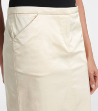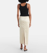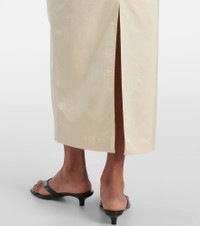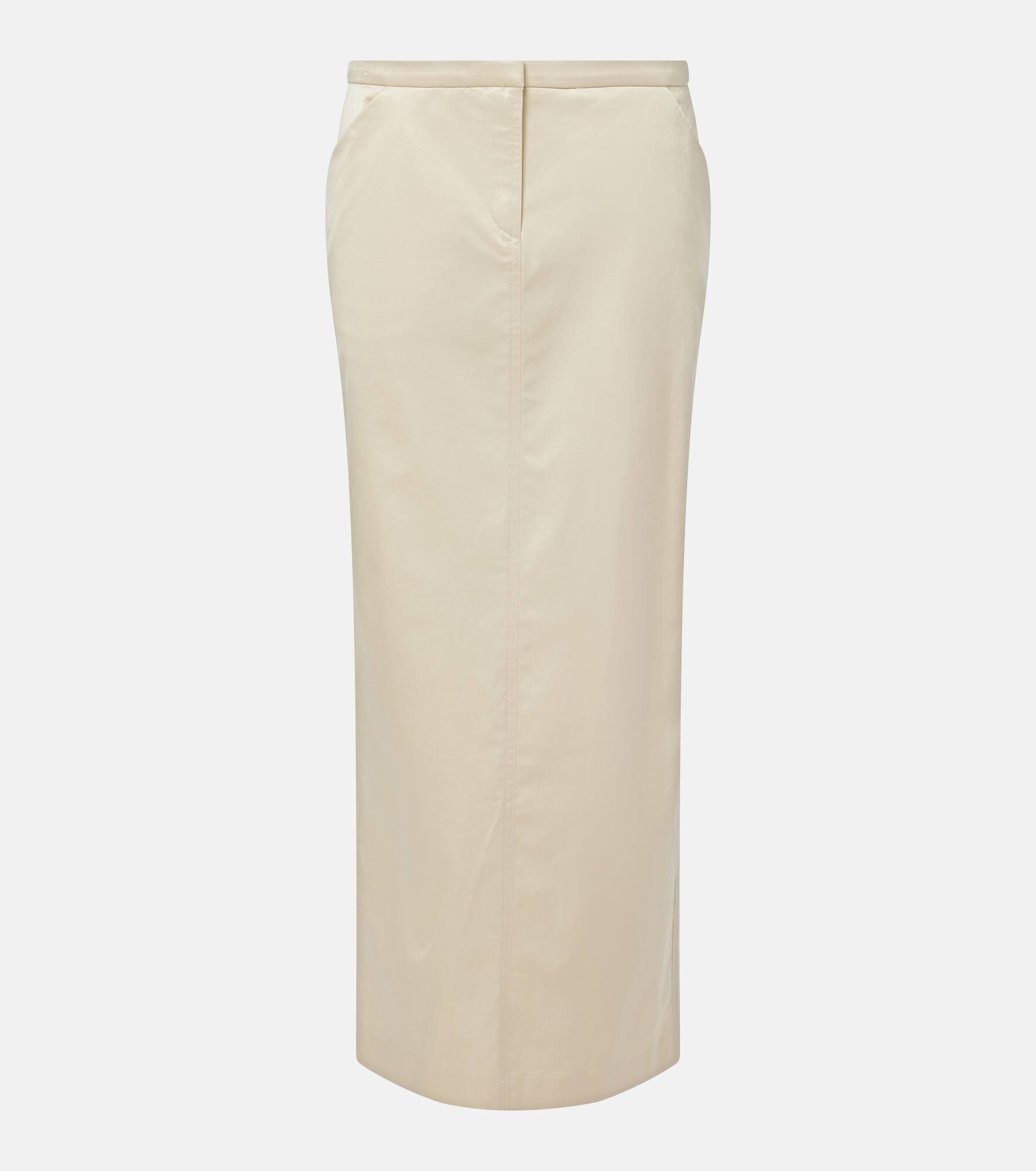 Define your dress code with styles from Toteme, a Stockholm-based brand dedicated to creating a modern uniform. This maxi skirt is crafted from cotton-blend satin to a straight silhouette and features side slit pockets. Product Details - Material: 54% cotton, 41% viscose, 5% elastane - Care instructions: dry clean - Made in Portugal - Designer color name: Ecru - Closure: zipper fly, button fastening - Pockets: side slit pockets - Item number: P01040539 Size & Fit - True to size - Non-stretchy fabric - slit length 44,0cm-17.5" - The model seen in the picture is 178cm-5'10" and wearing a size DT 34