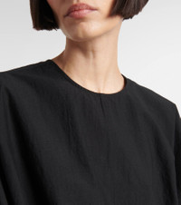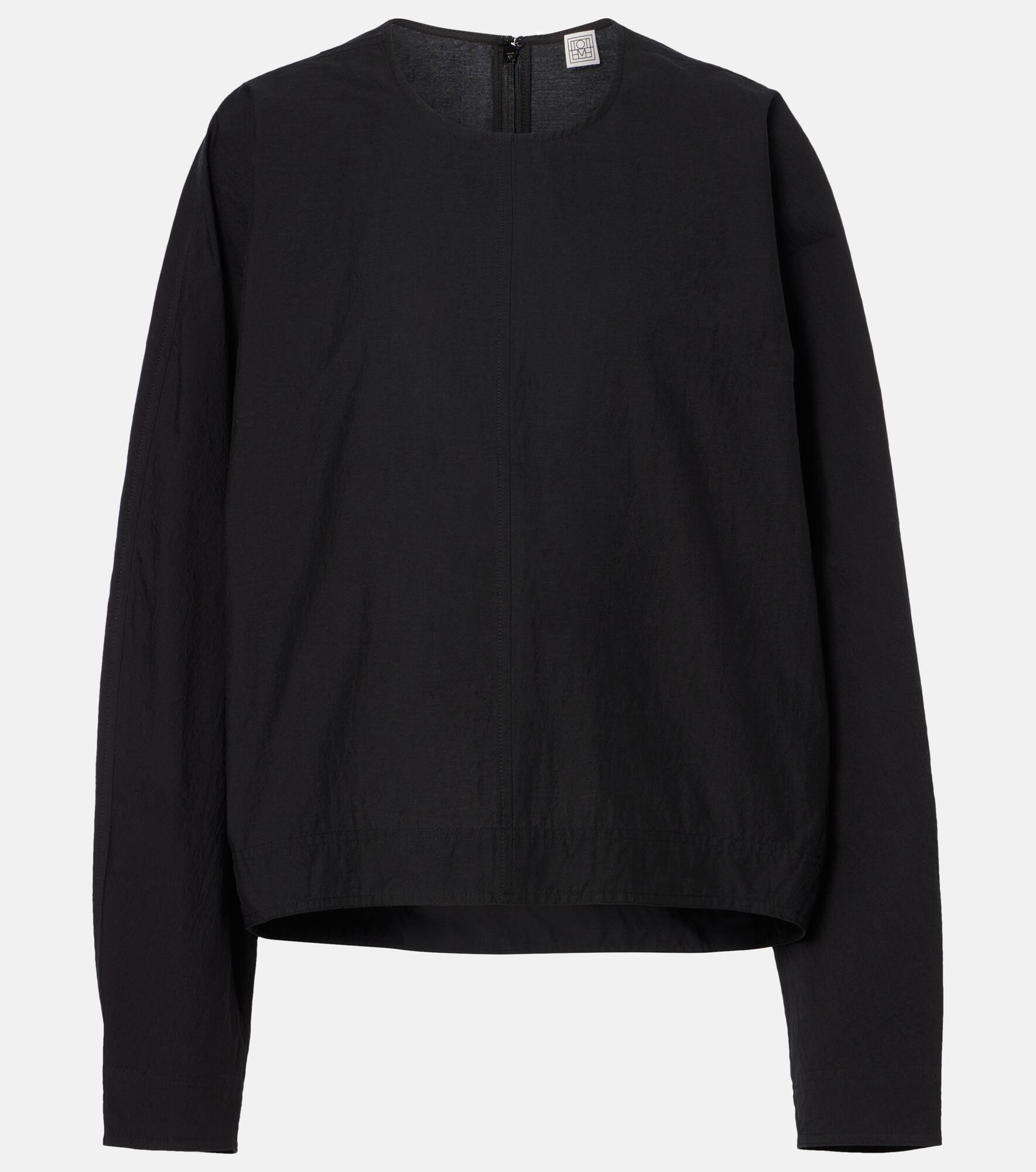 Define your dress code with styles from Toteme, a Stockholm-based brand dedicated to creating a modern uniform. Cut from a lightweight, crinkled cotton-blend fabric, this top showcases a structured silhouette enhanced by the tapered waist and sleeves. Product Details - Material: 84% cotton, 16% polyamide (recycled) - Care instructions: machine wash at 30 degrees - Made in Portugal - Designer color name: Black - Item number: P01040510 Size & Fit - True to size - Dropped shoulders - Designed for a loose fit - Non-stretchy fabric - Falls to the hip - The model seen in the picture is 178cm-5'10" and wearing a size DT 34