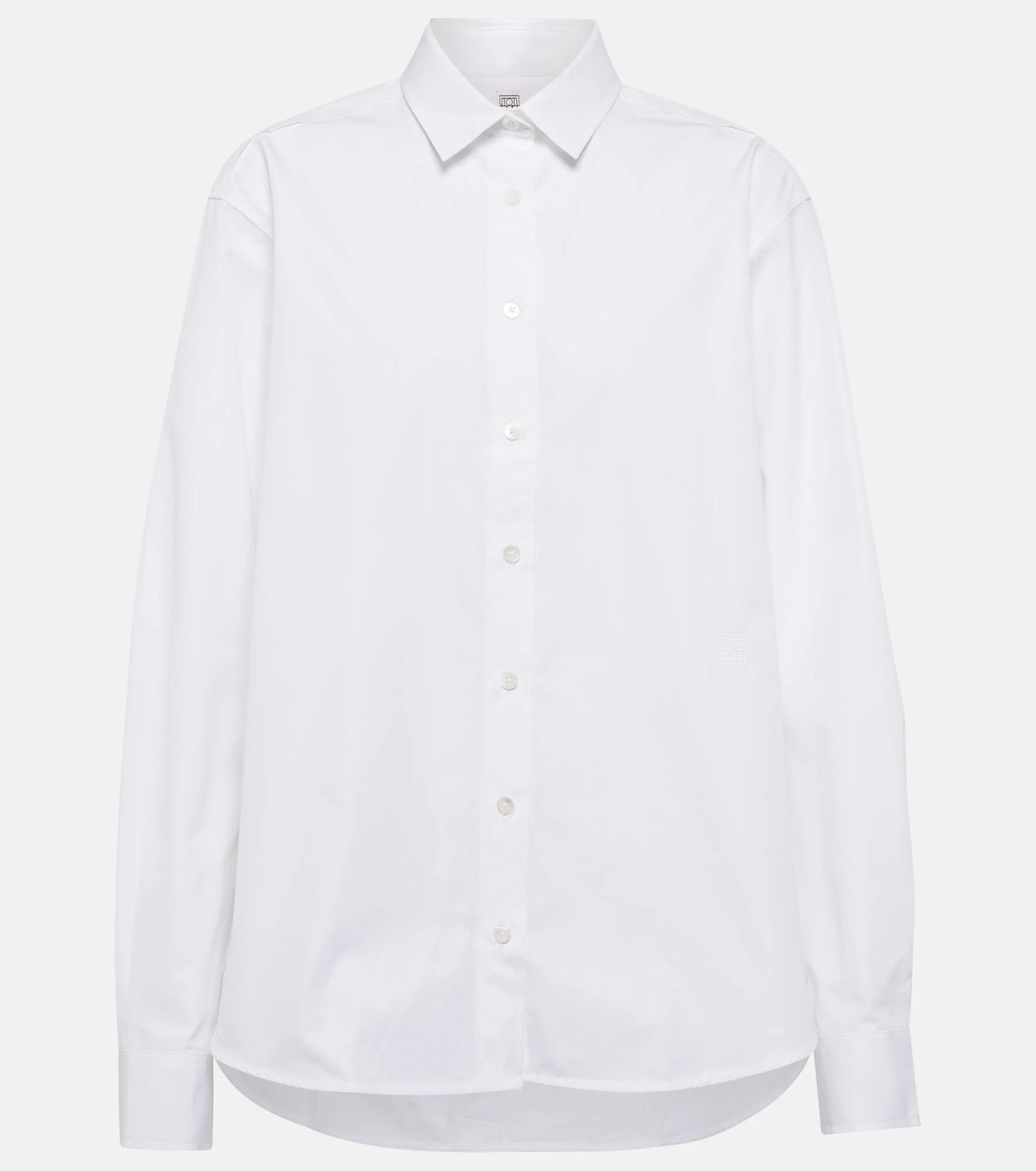 A classic white shirt, like this style from Totême, is a wardrobe necessity. It's made from crisp organic cotton poplin with a high-low curved shirttail hem. Product Details - Material: 100% organic cotton - Buttoned cuffs - Care instructions: machine wash at 60 degrees - Designer color name: White - Closure: buttoned front - Made in Portugal - Item number: P00628188 Size & Fit - True to size - Dropped shoulders - Oversized - Non-stretchy fabric - Falls below the hip - The model seen in the picture is 178cm-5'10" and wearing a size DT 34