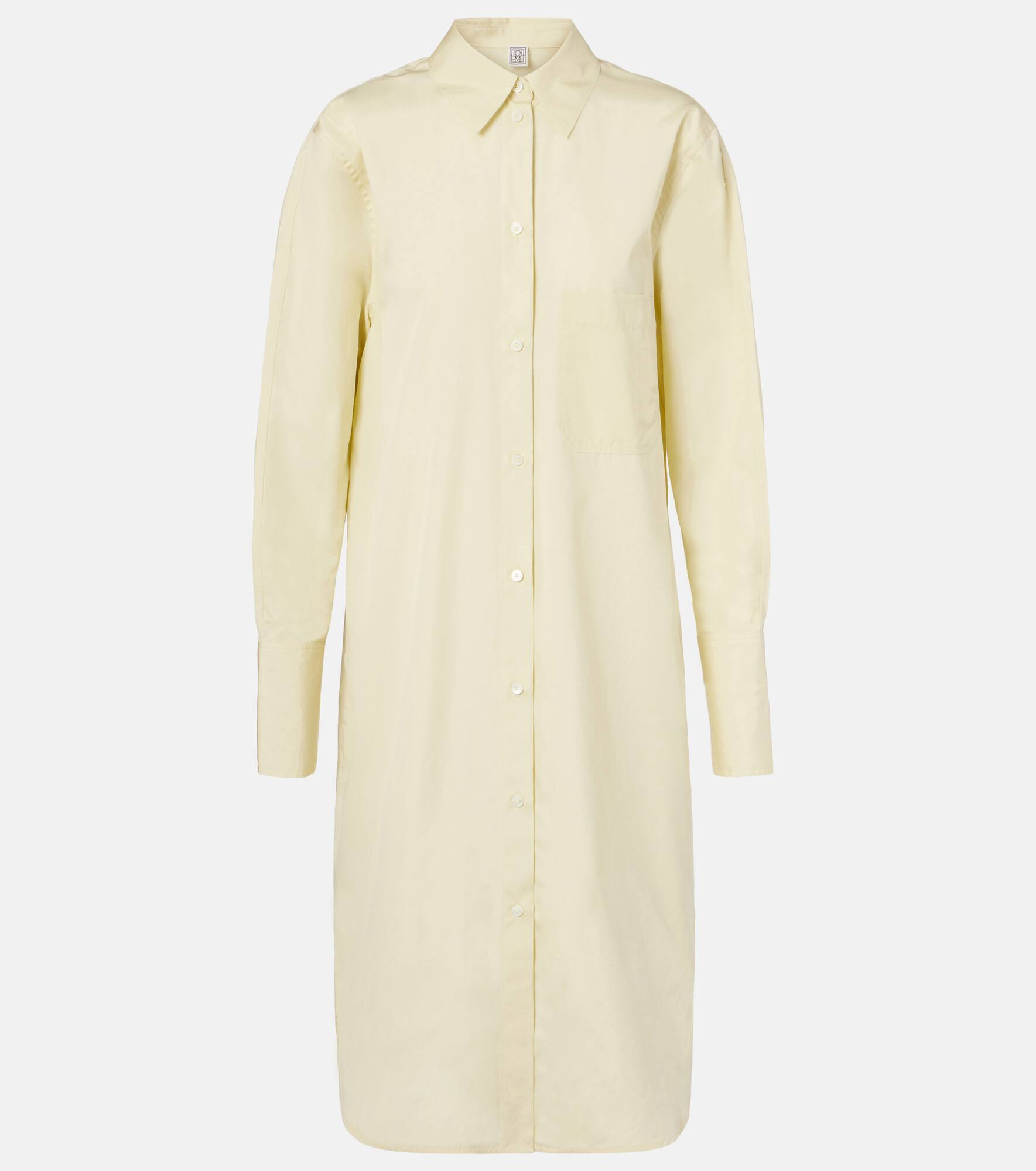 Define your dress code with styles from Toteme, a Stockholm-based brand dedicated to creating a modern uniform. This shirt dress is crafted from cotton poplin and boasts a midi length. Product Details - Material: 100% cotton - Care instructions: machine wash at 30 degrees - Made in Turkey - Designer color name: Straw - Item color: yellow - Closure: buttoned front - Collar: classic (Straight point) - Cuff: two buttons - Pockets: breast pocket - Item number: P01075266 Size & Fit - True to size - Dropped shoulders - Oversized - Non-stretchy fabric - The model seen in the picture is 178cm-5'10" and wearing a size DE 34