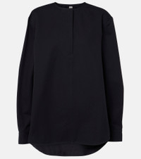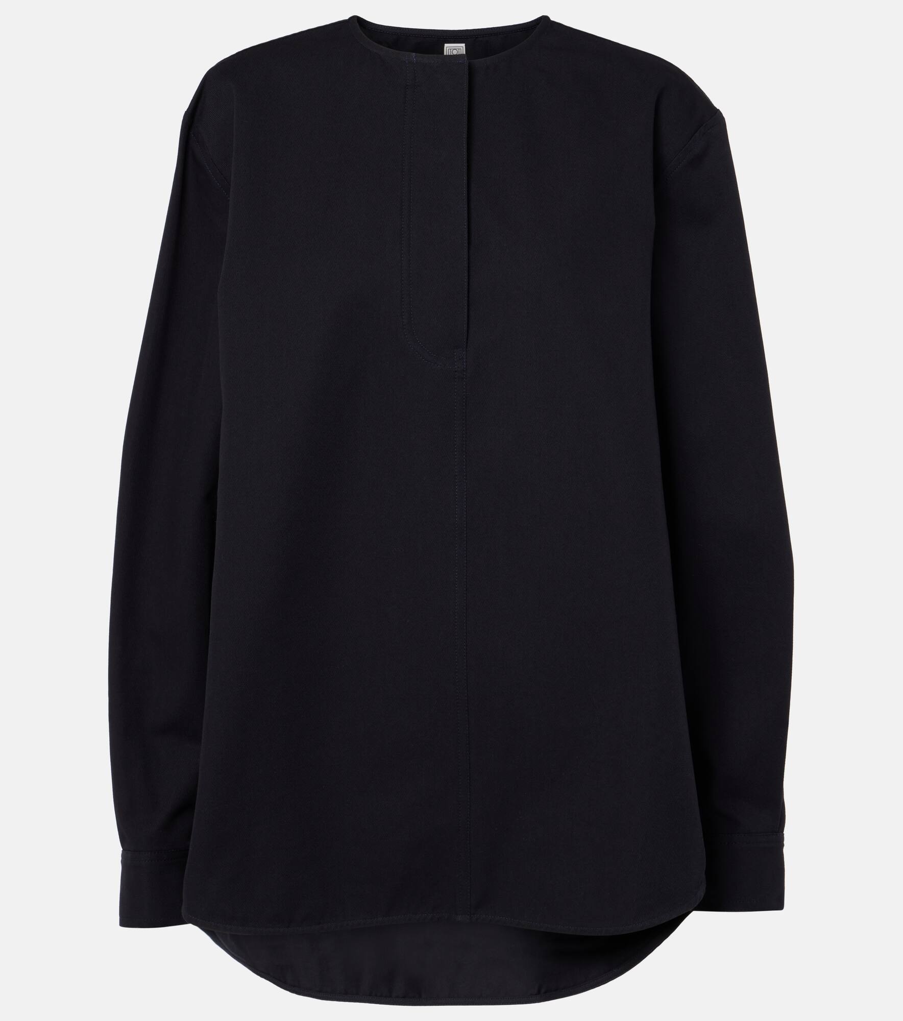 Define your dress code with styles from Toteme, a Stockholm-based brand dedicated to creating a modern uniform. Cut from cotton twill to a relaxed silhouette, this shirt stands out with a concealed half-button placket on the front. Product Details - Material: 100% cotton (organic) - Care instructions: machine wash at 30 degrees - Made in Lithuania - Designer color name: Midnight - Closure: partially buttoned front - Buttoned cuffs - Item number: P01040584 Size & Fit - True to size - Designed for a loose fit - Non-stretchy fabric - Falls to the hip - The model seen in the picture is 178cm-5'10" and wearing a size DT 34