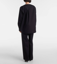 Collarless cotton-twill shirt black