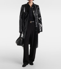 Croc-effect embossed leather coat